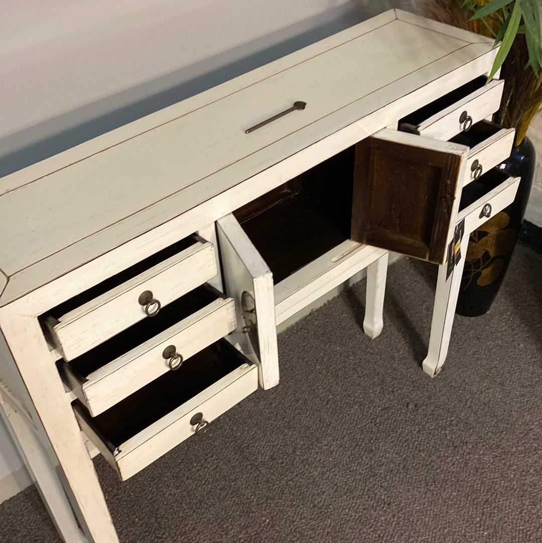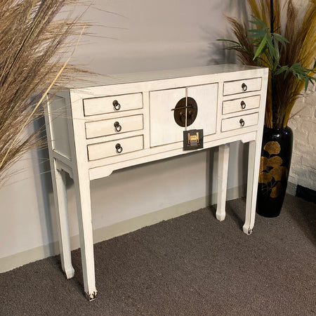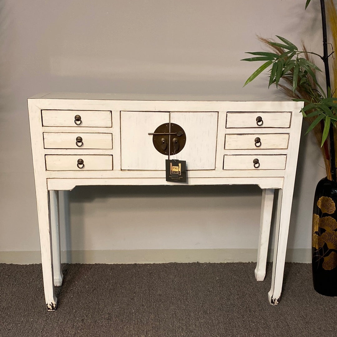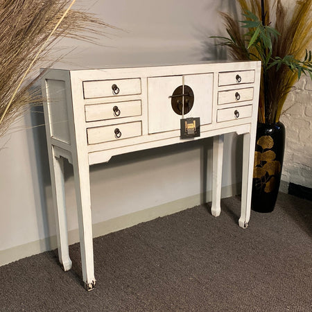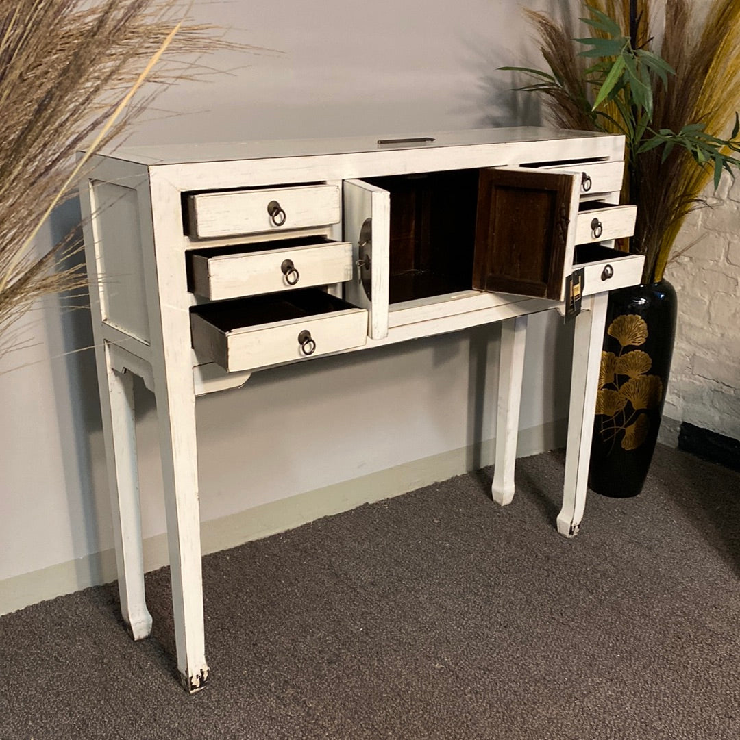 Raffiniert und praktisch - die PTMD Adeline Konsole! Mit asiatischem Flair und schwarz lackierten Schubladen ist sie ein echter Hingucker und bietet gleichzeitig Stauraum. Stilvoll und funktional, perfekt für jedes Zuhause