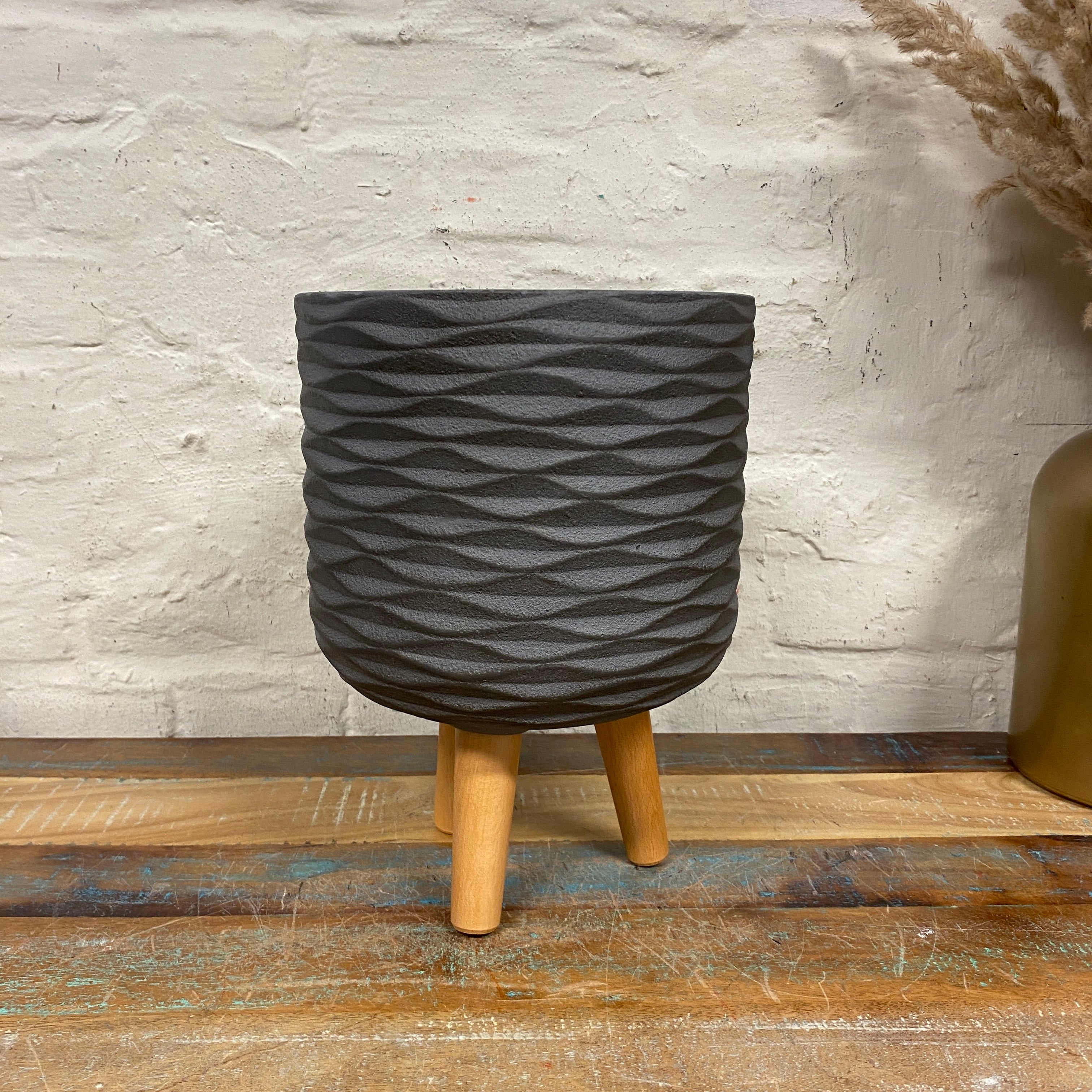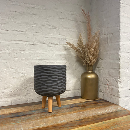 + Moderner Blumentopf / Pflanztopf in stilvollem Grau mit dekorativer Struktur