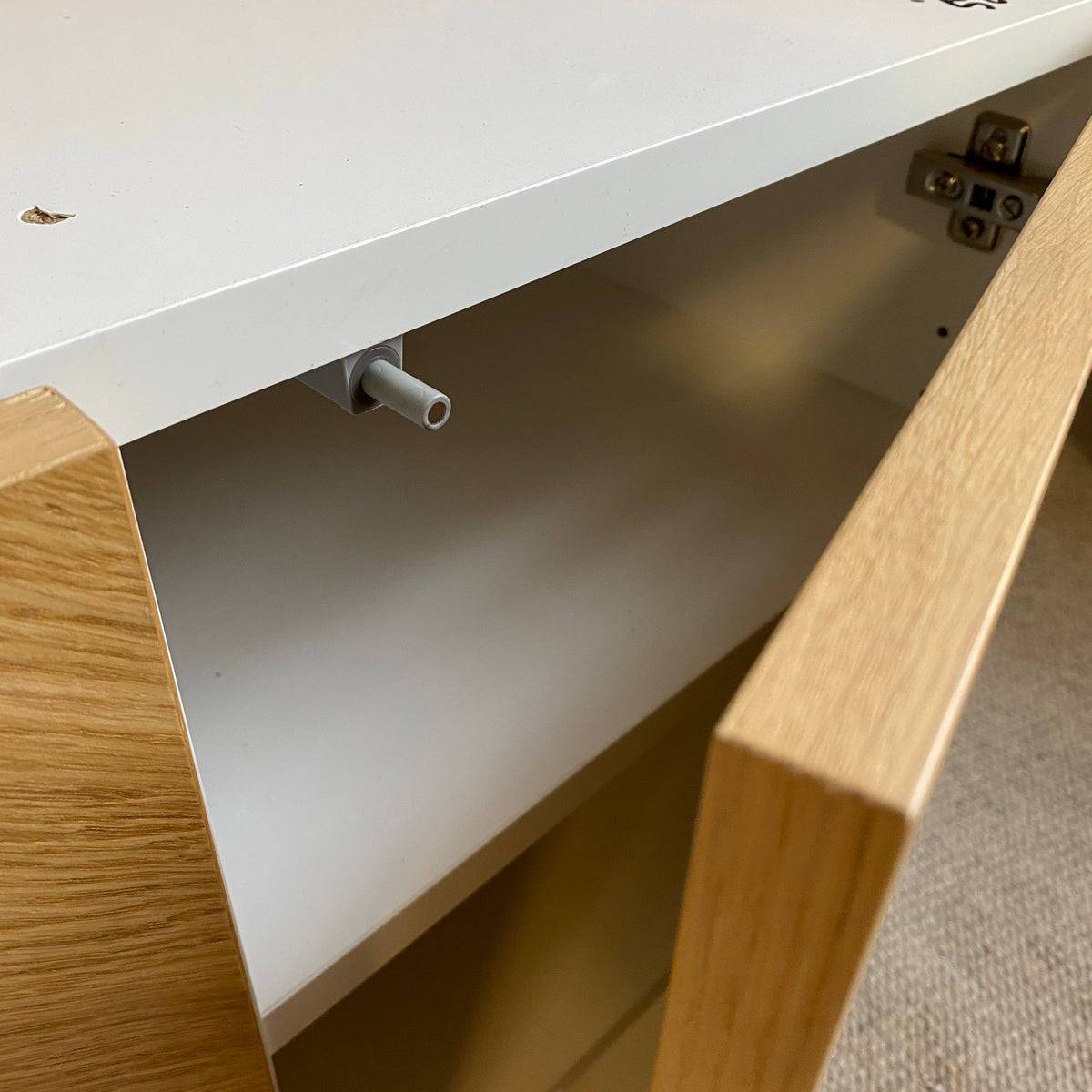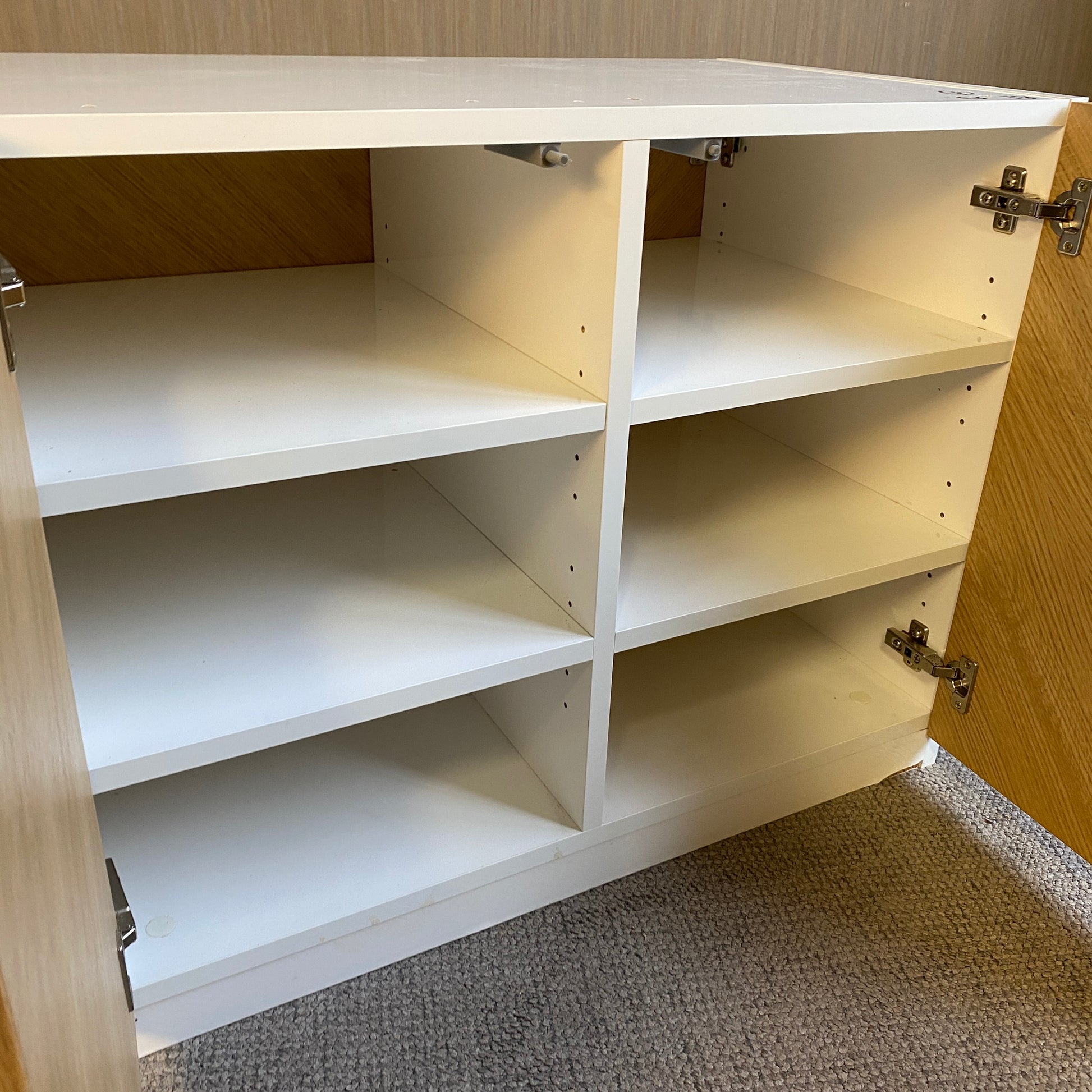 + Viel Stauraum: Mehrere Innenfächer mit stabilen Einlegeböden für Geschirr, Medien oder Deko