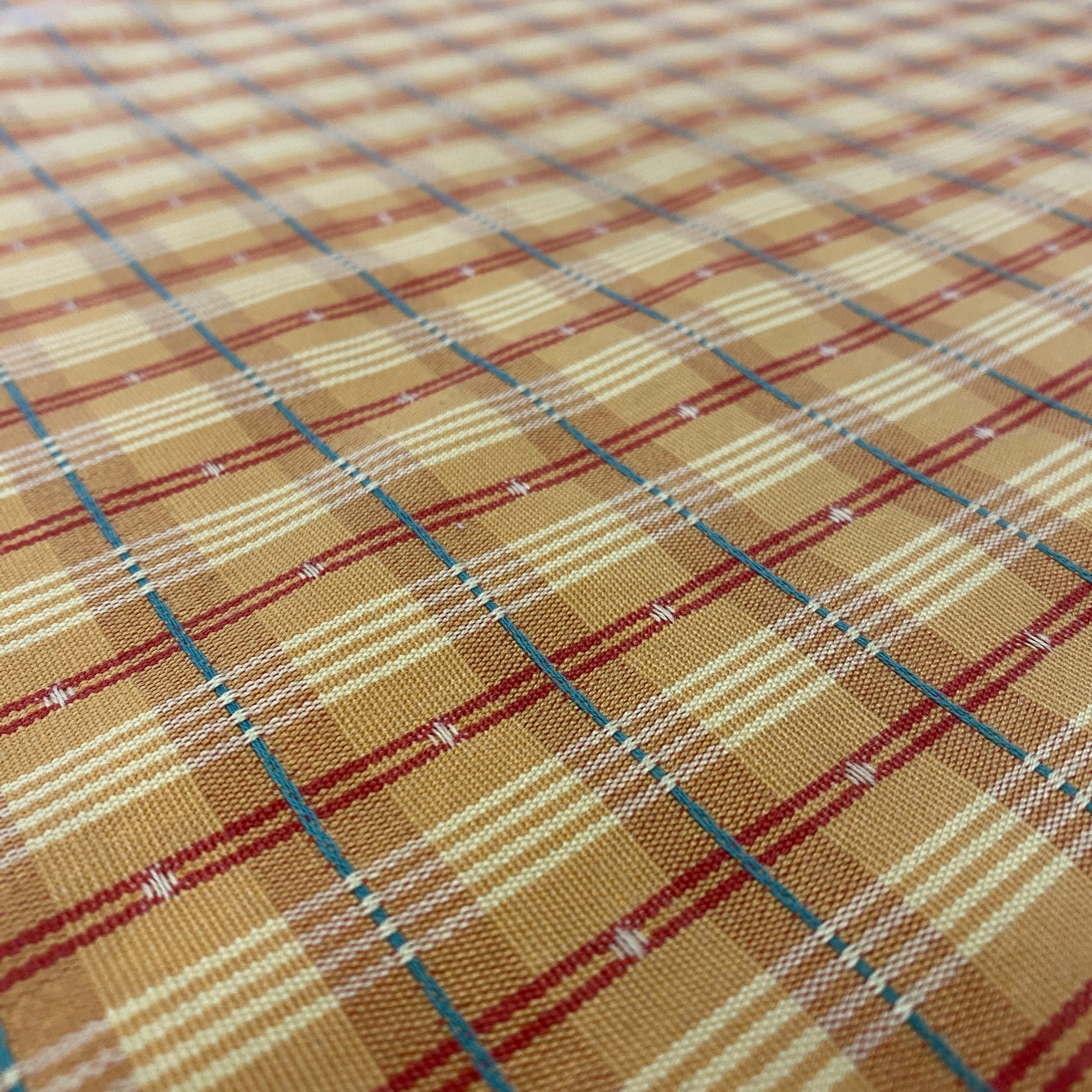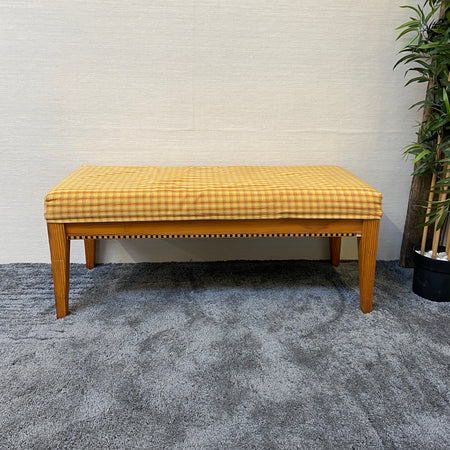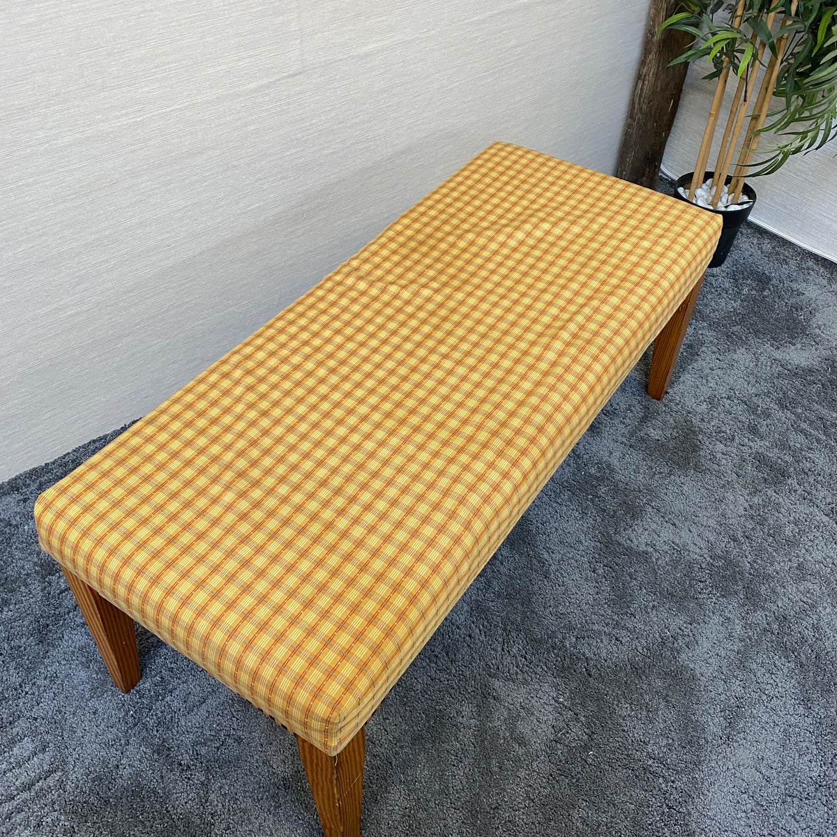 + Gepolsterte Sitzfläche im Retro-Karo-Design (Gelb/Rot/Blau), bequem und dekorativ