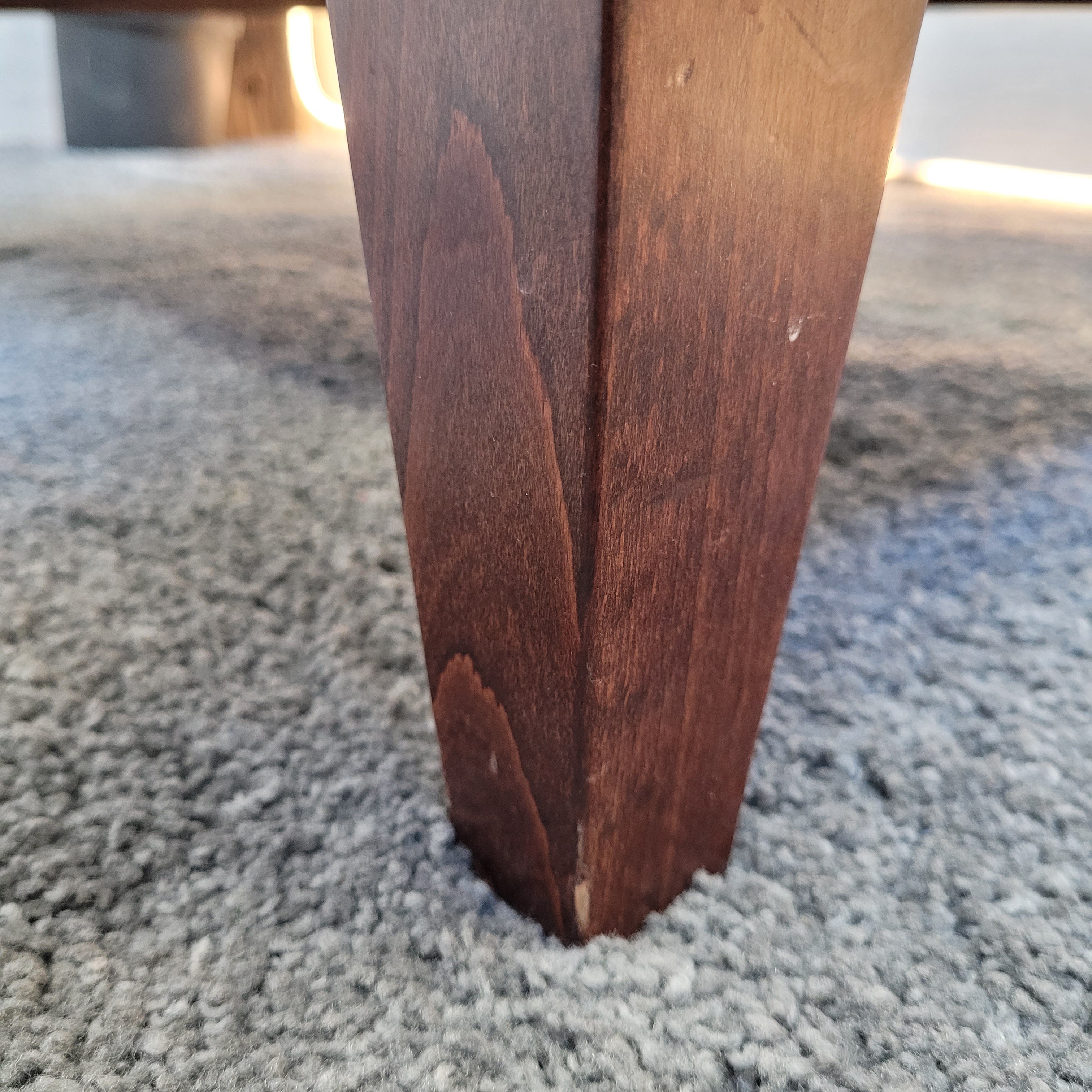 + Stabiler Holzrahmen mit soliden, dunklen Holzfüßen für sicheren Stand