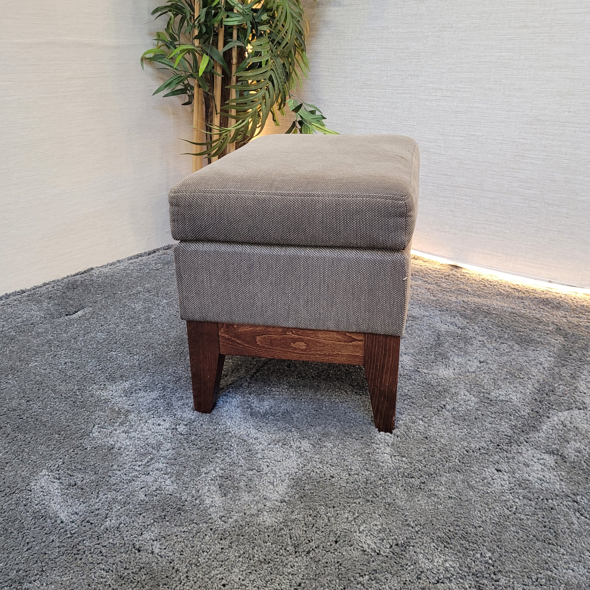 + Hochwertiger Polsterhocker in neutralem Grau – ideal als Fußhocker, Sitzgelegenheit oder Beistellhocker