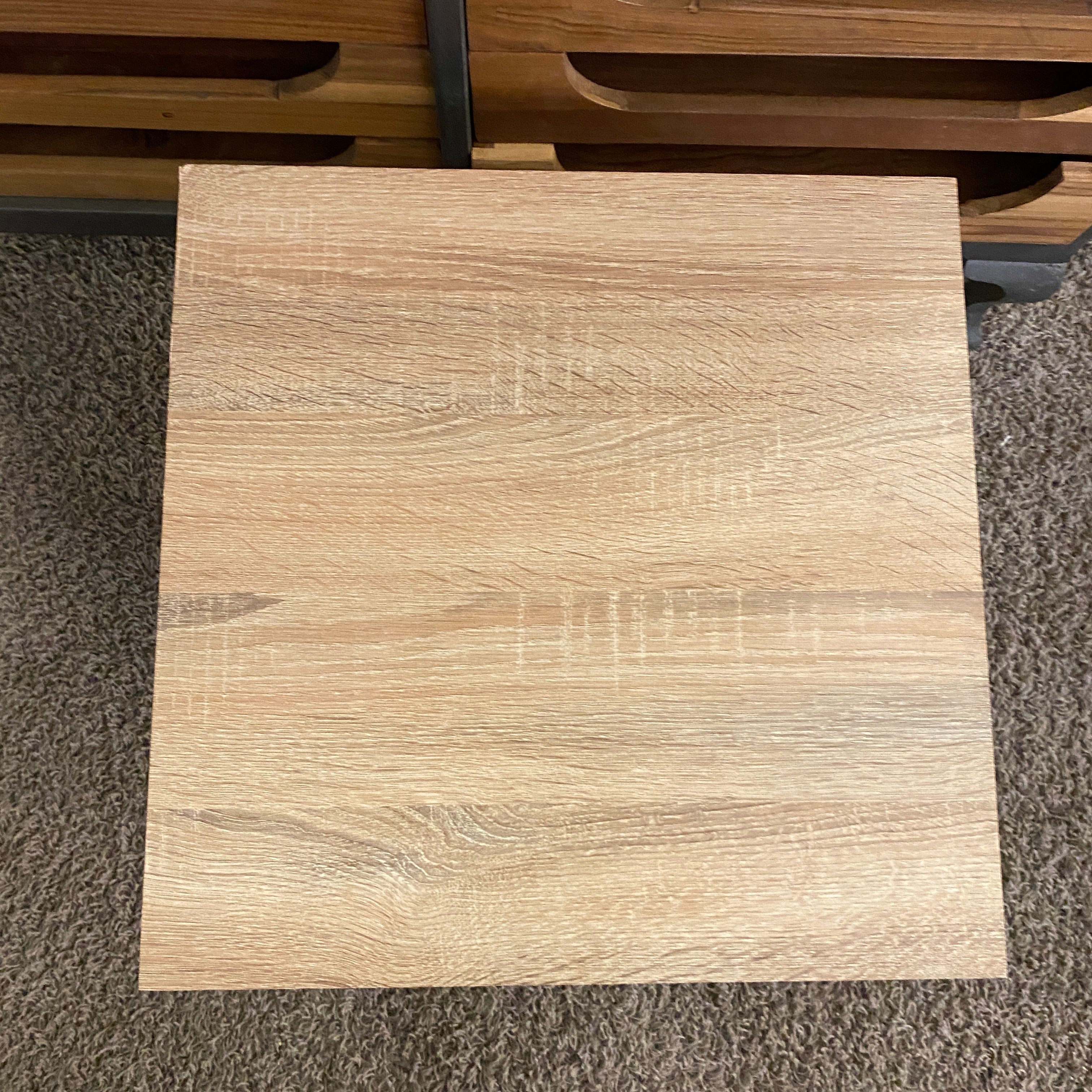 + Zeitloses Design – quadratische Tischplatte in hellem Eiche-Dekor, passend zu modernen & rustikalen Wohnstilen