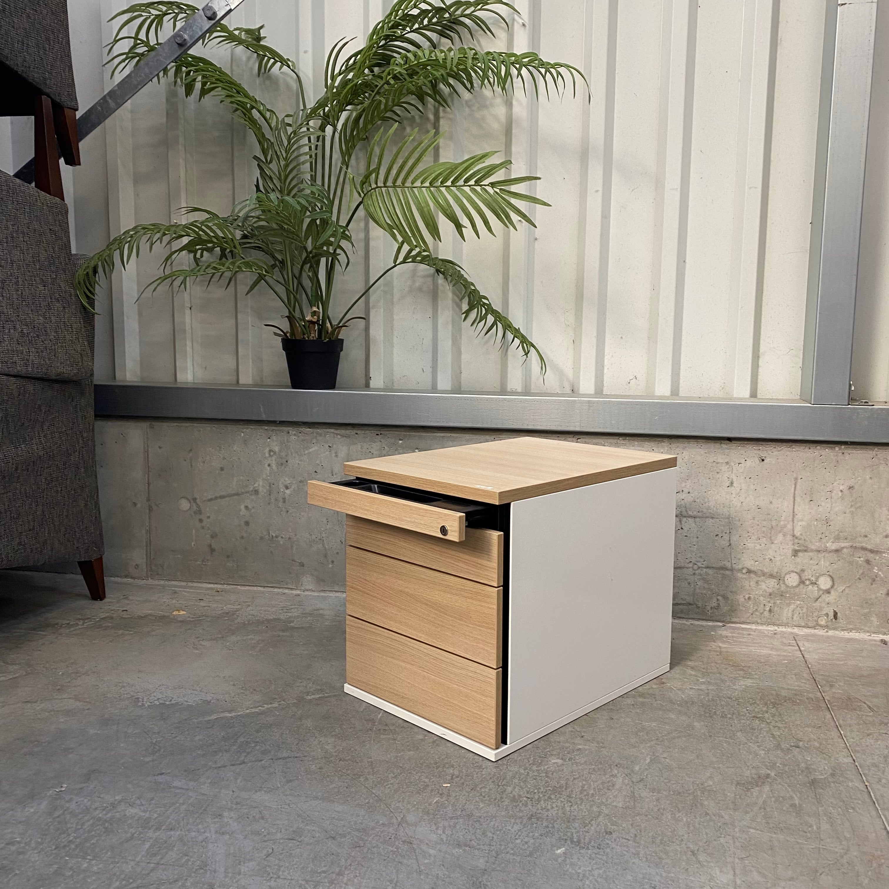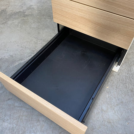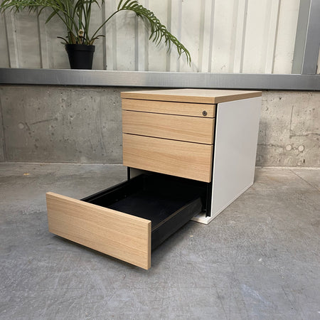 + Funktionaler Büro-Standcontainer mit Fronten in Buche-Dekor.
