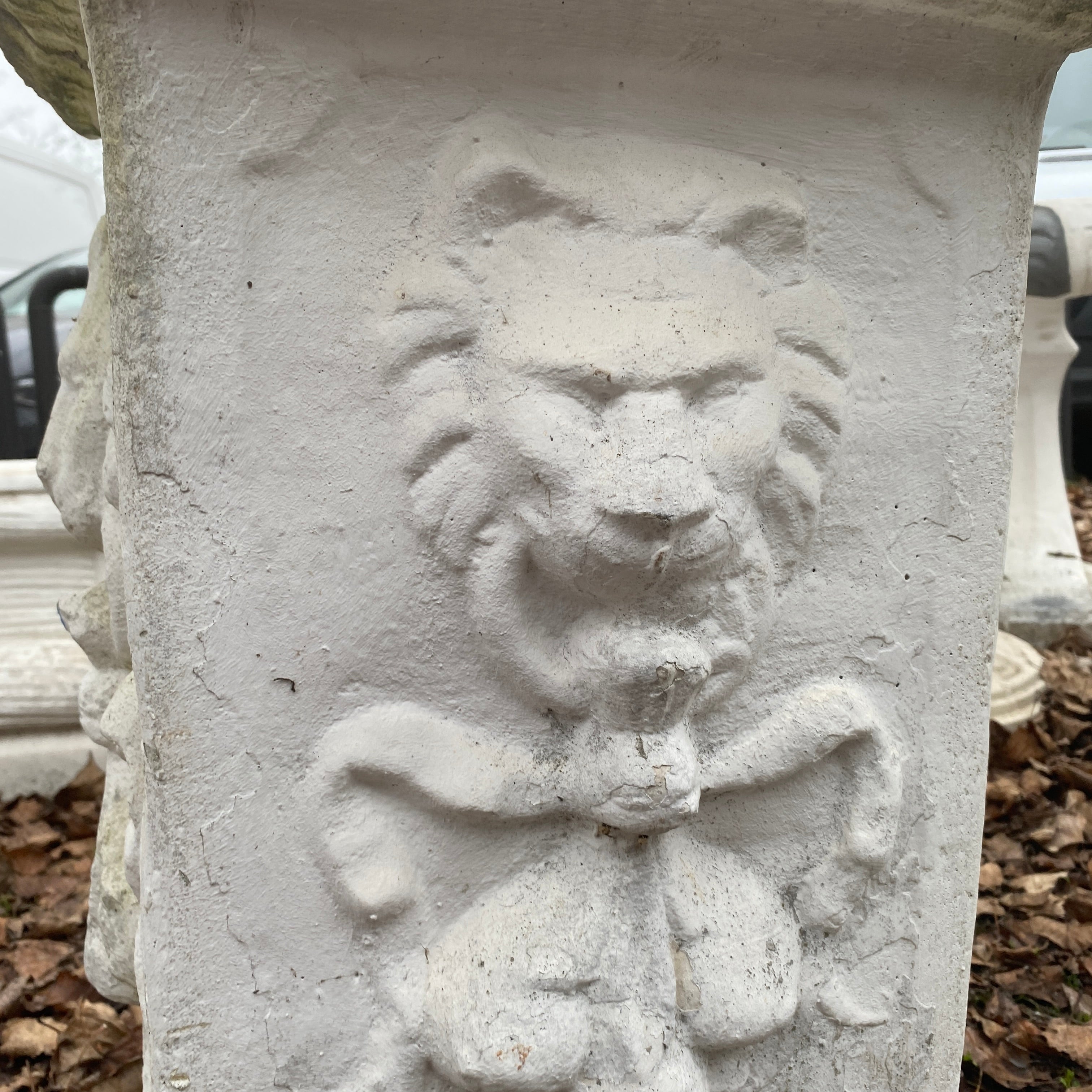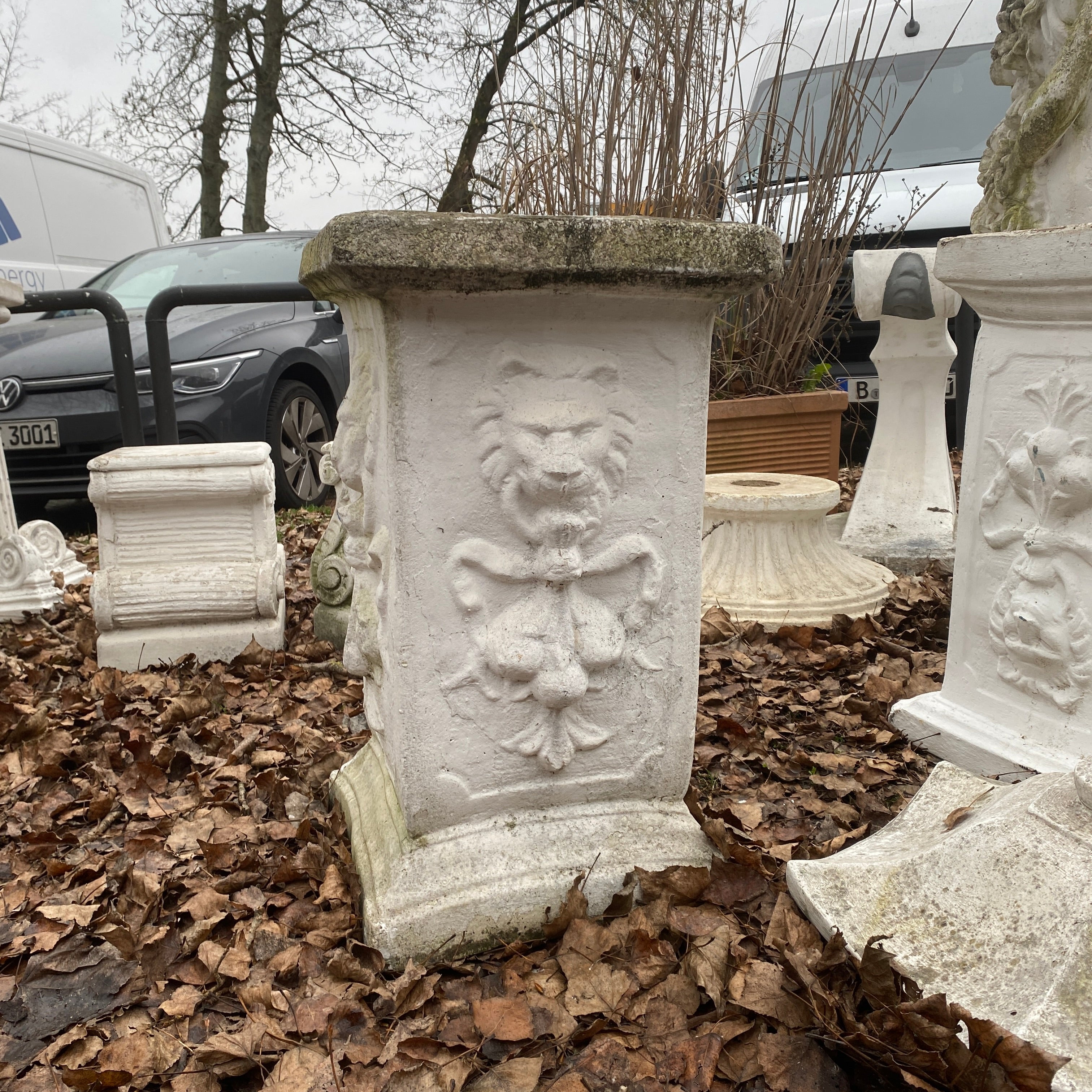 + Massive Gartensäule aus Stein mit Löwenornament
