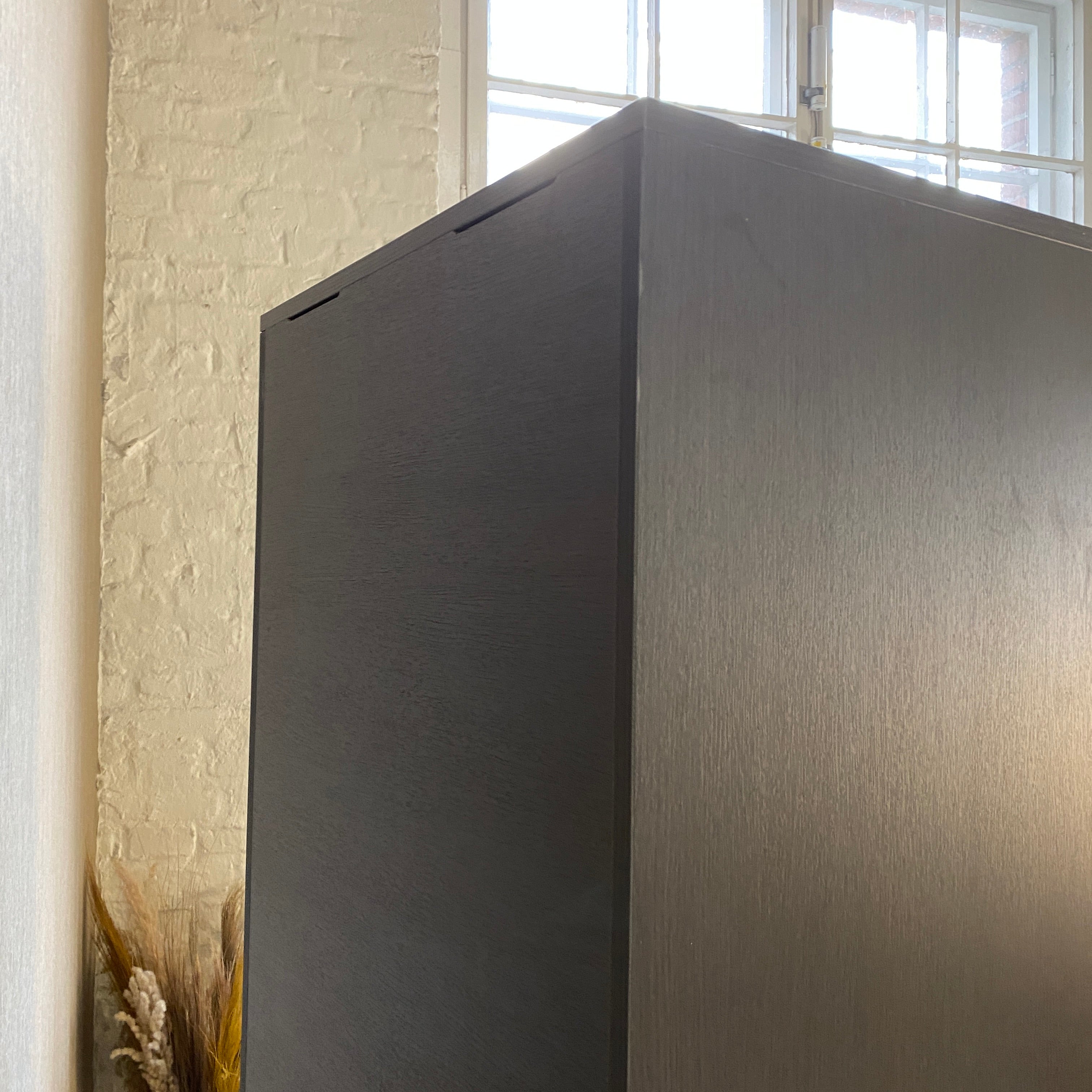 + Schmaler Hochschrank in modernem dunklem Holzdekor
