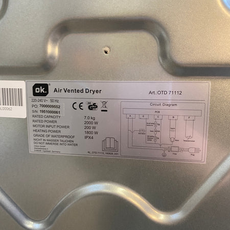 + ok. OTD 71112 Ablufttrockner – 7 kg Kapazität