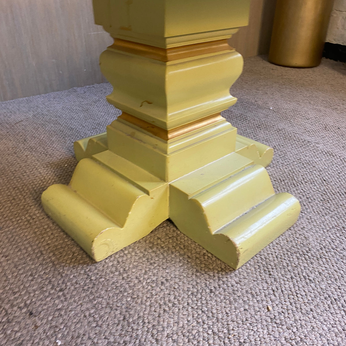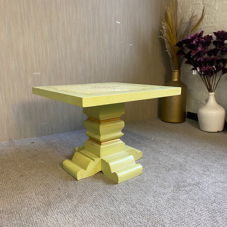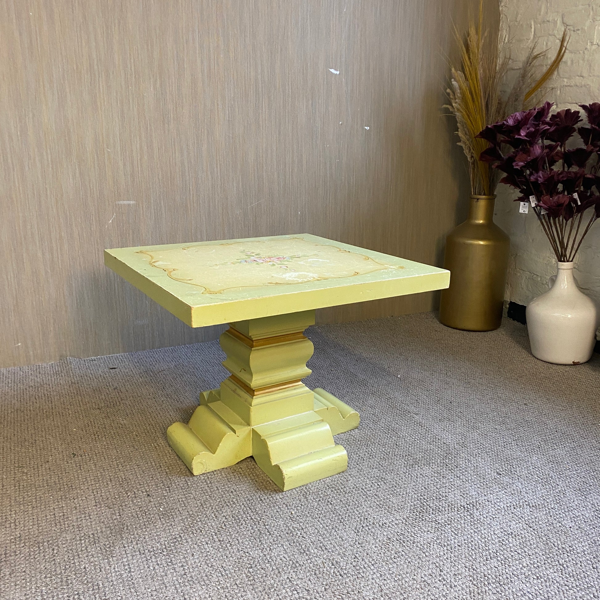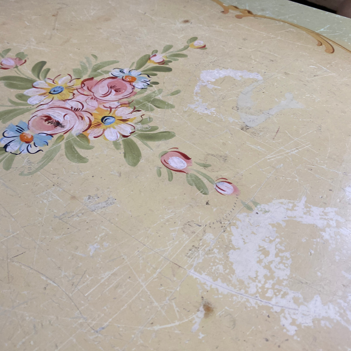 + Vintage Beistelltisch in Gelb mit handgemaltem Blumenmotiv