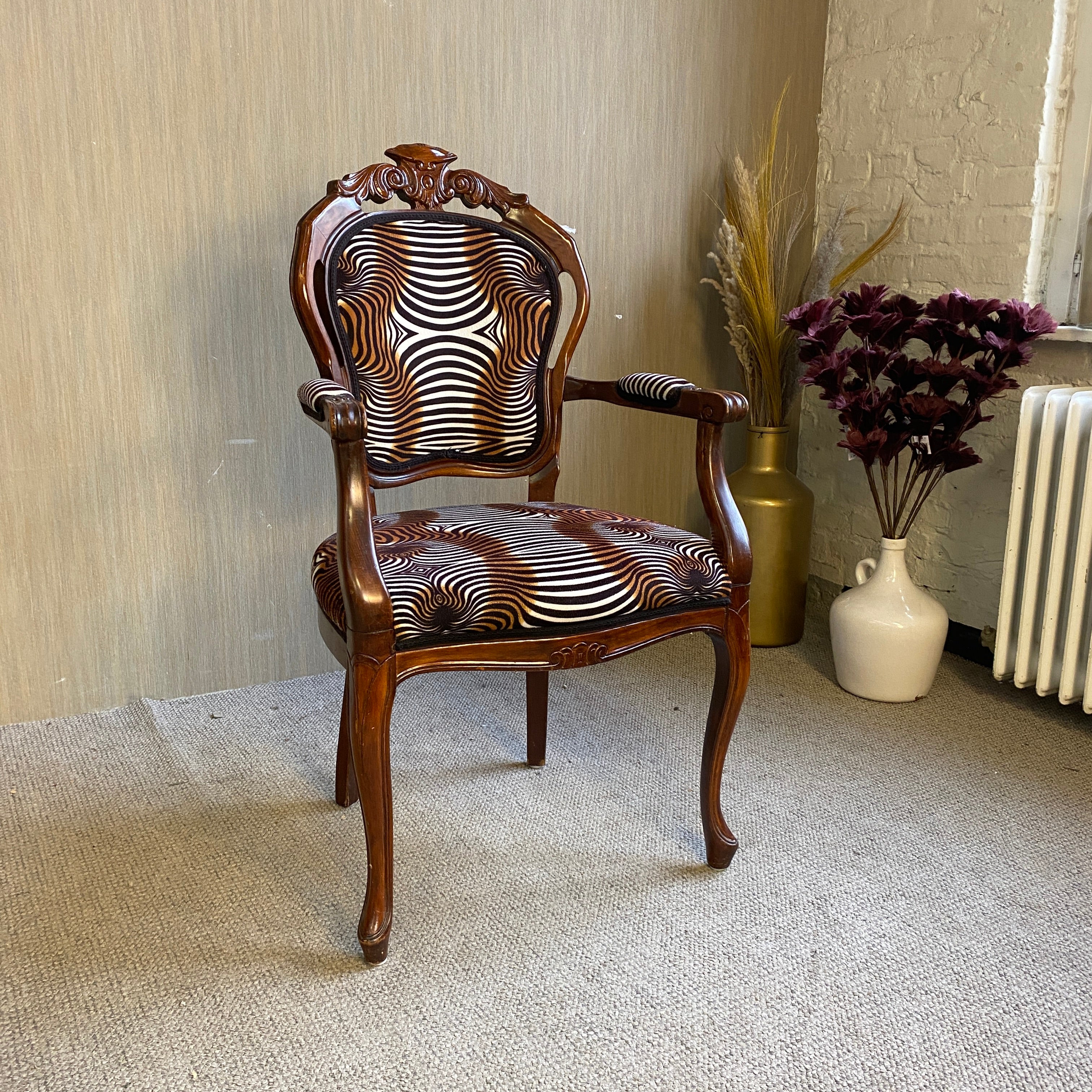+ Hochwertige Schnitzereien an Rückenlehne, Armlehnen und Gestell