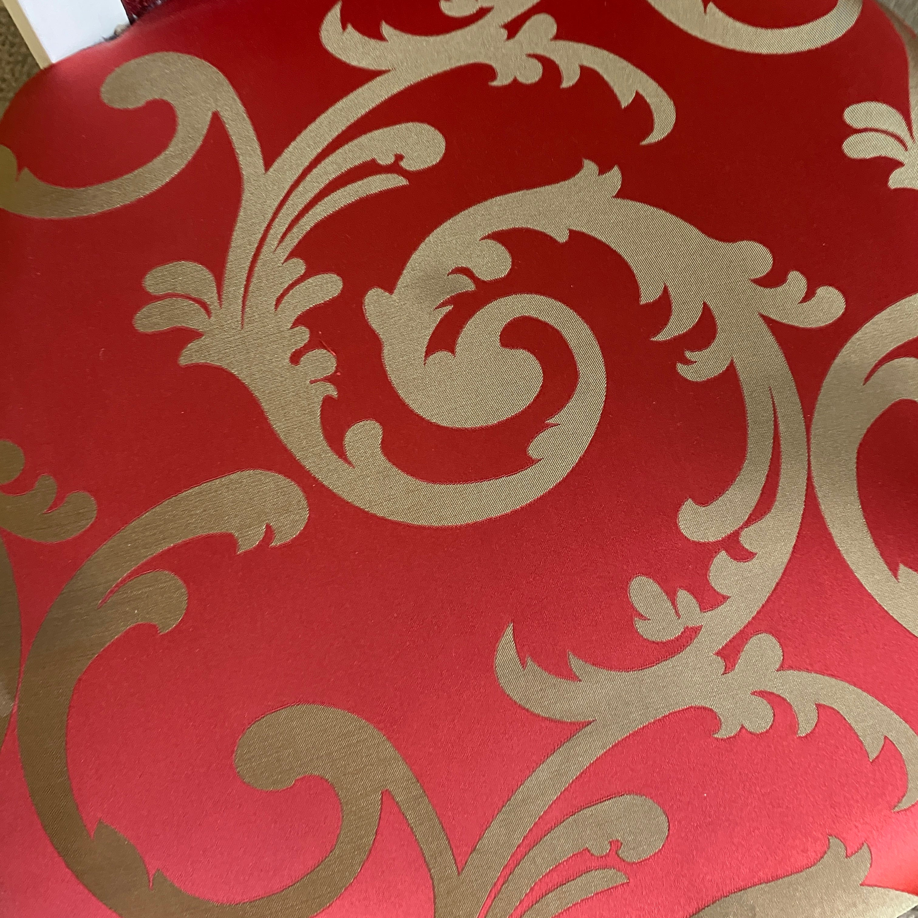 + Aufwendiger rot-goldener Barockstoff als Blickfang