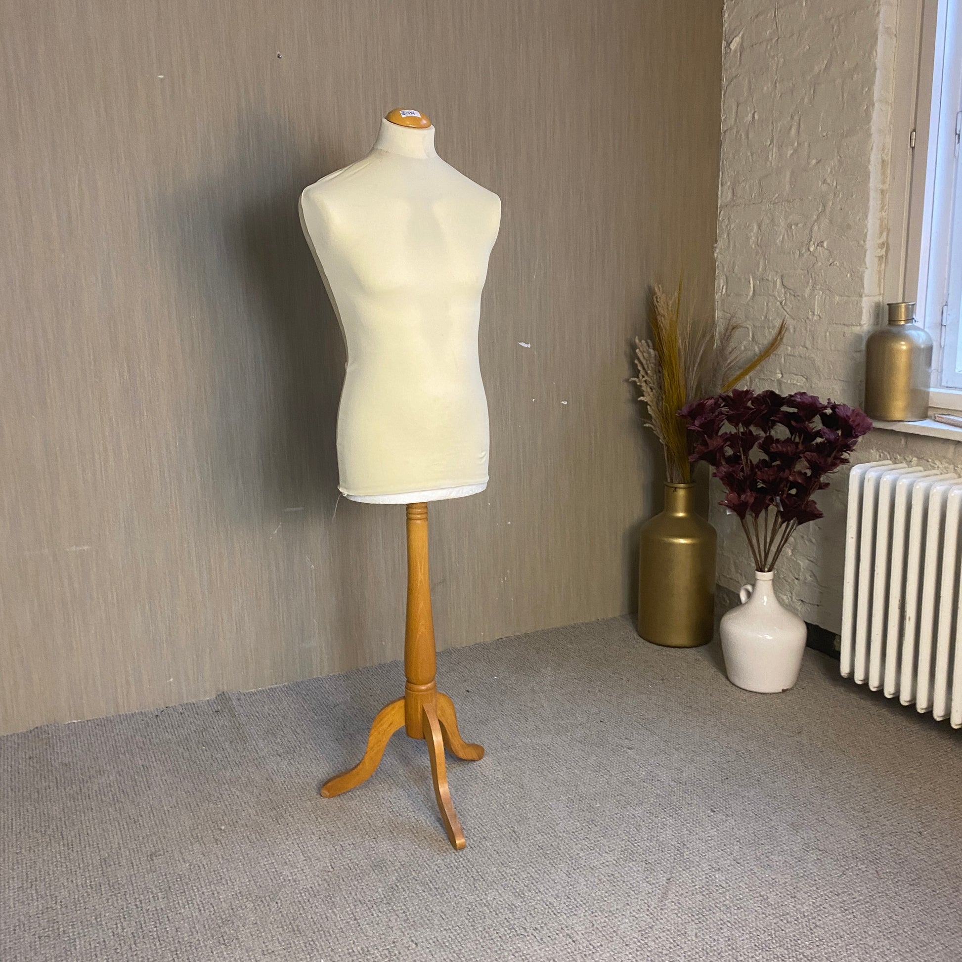 + Schneiderpuppe mit stabilem Holzständer und klassischer Dreibein-Basis.