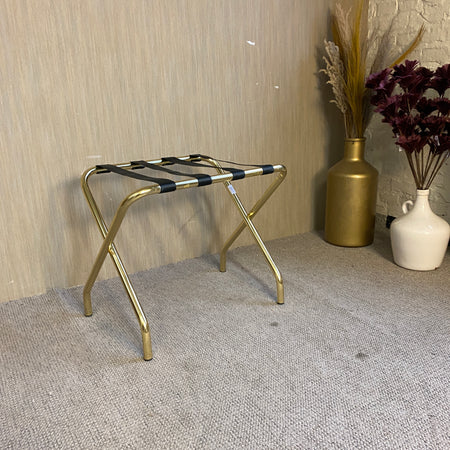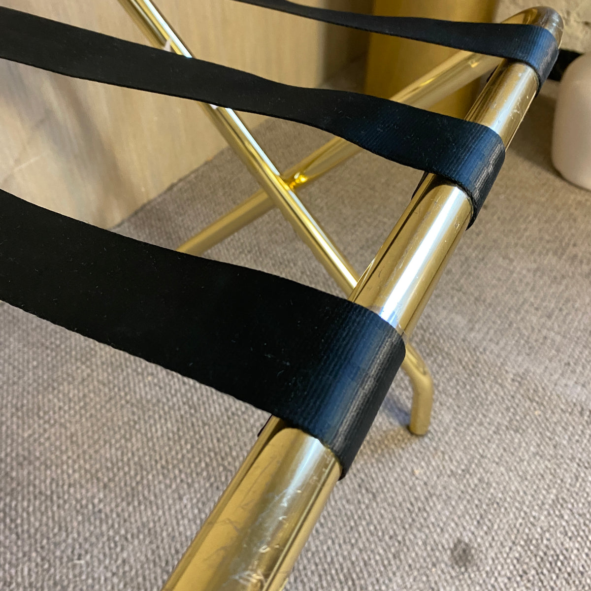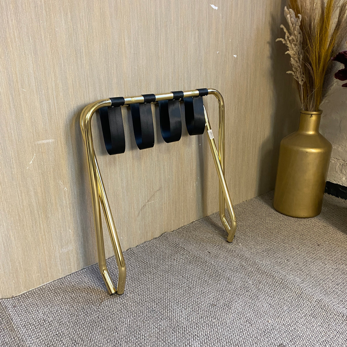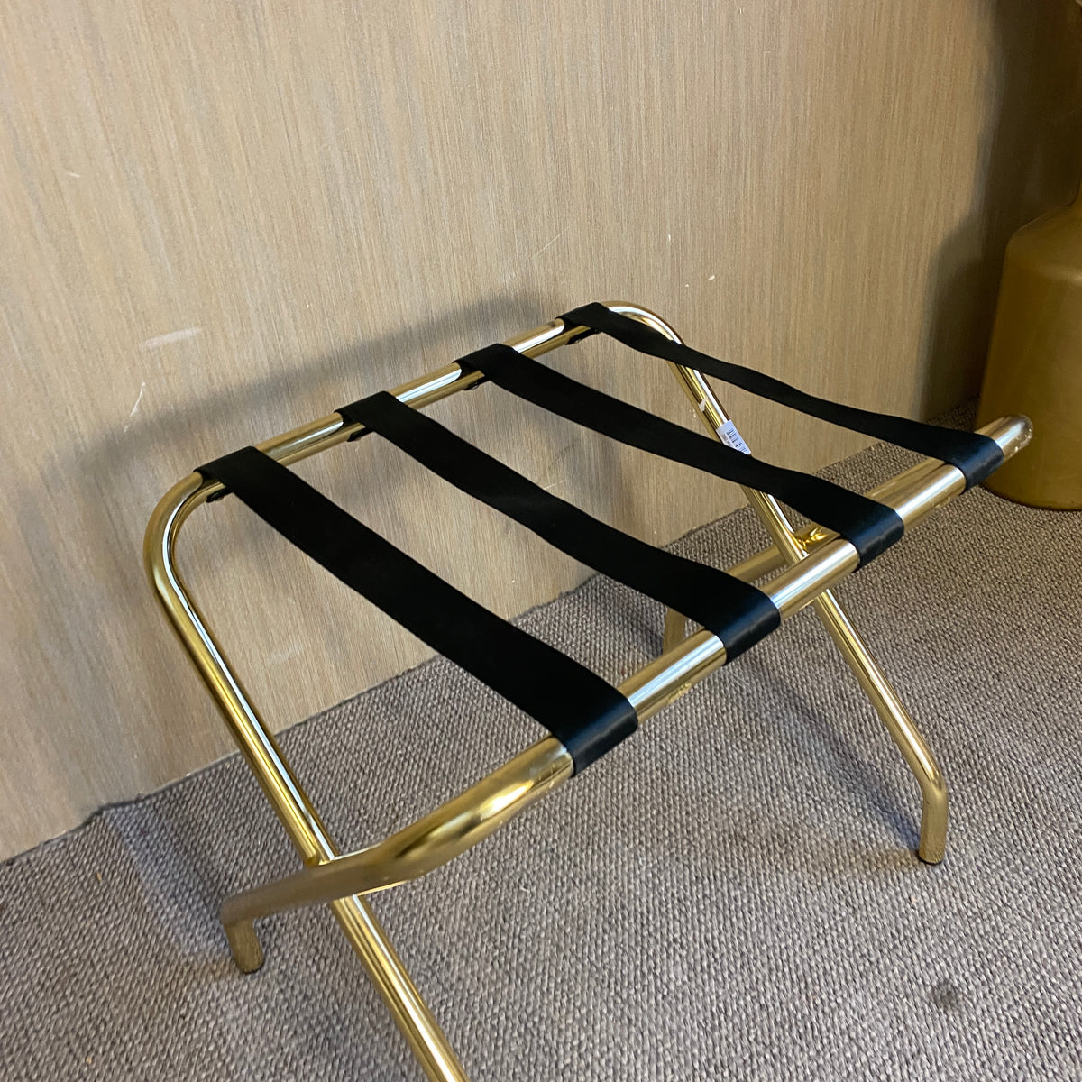 + Klappbare Kofferablage aus Metall mit stabilen schwarzen Gurten.