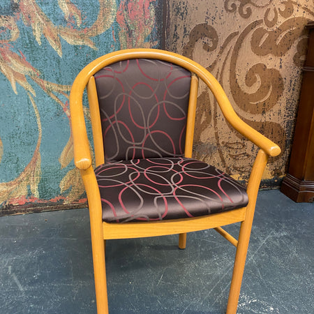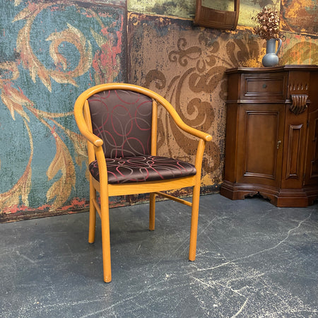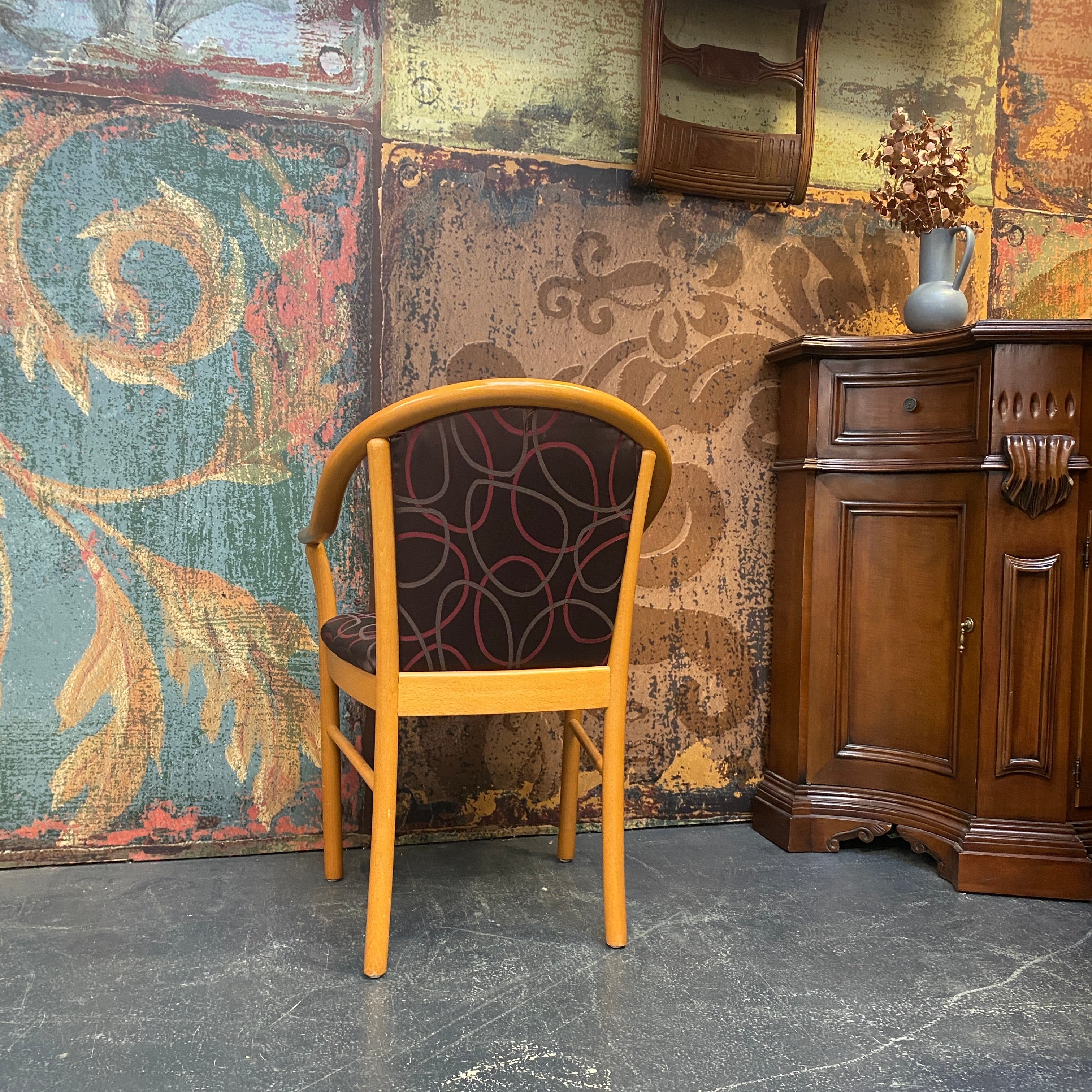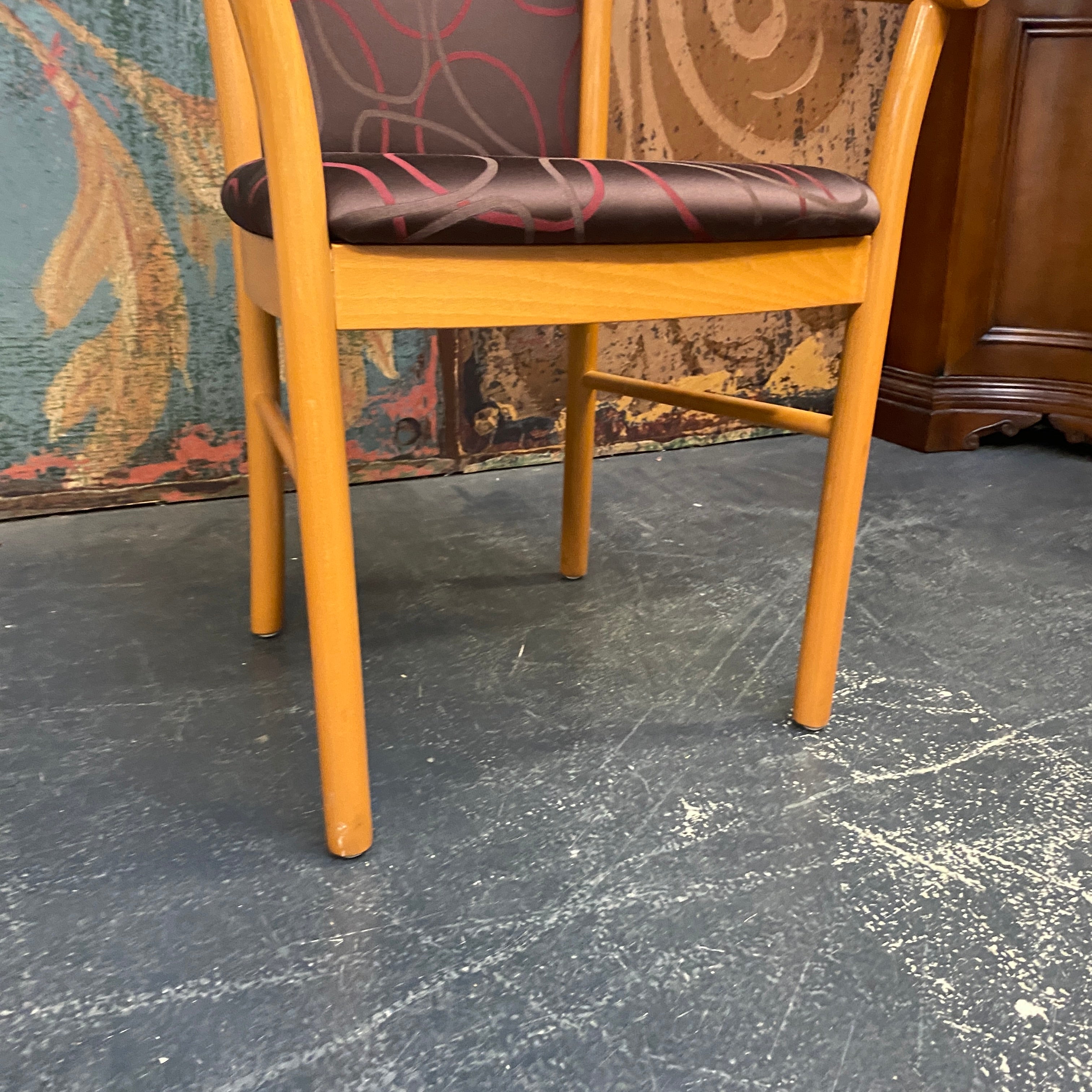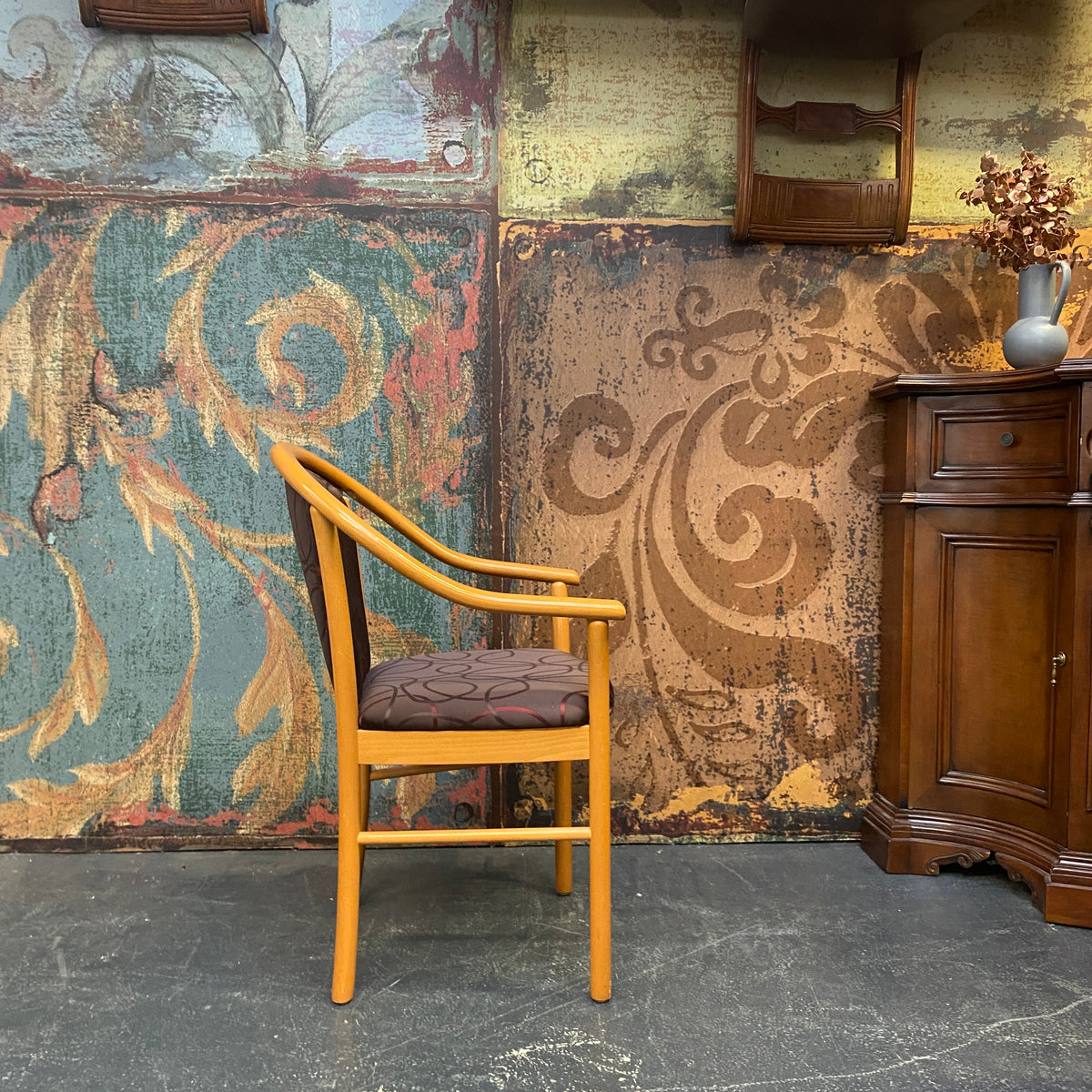 + Eleganter Armlehnstuhl aus hell lackiertem Holz mit stabiler Konstruktion.