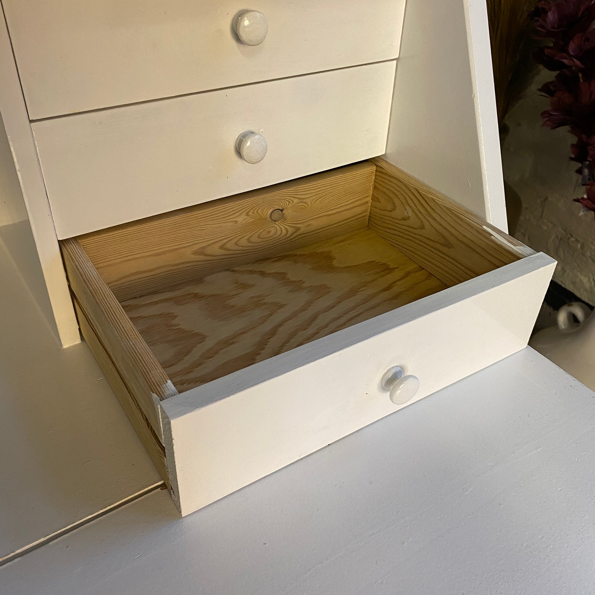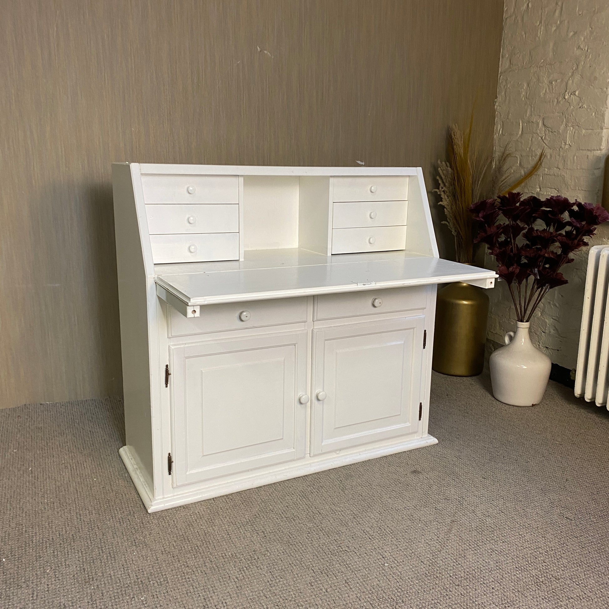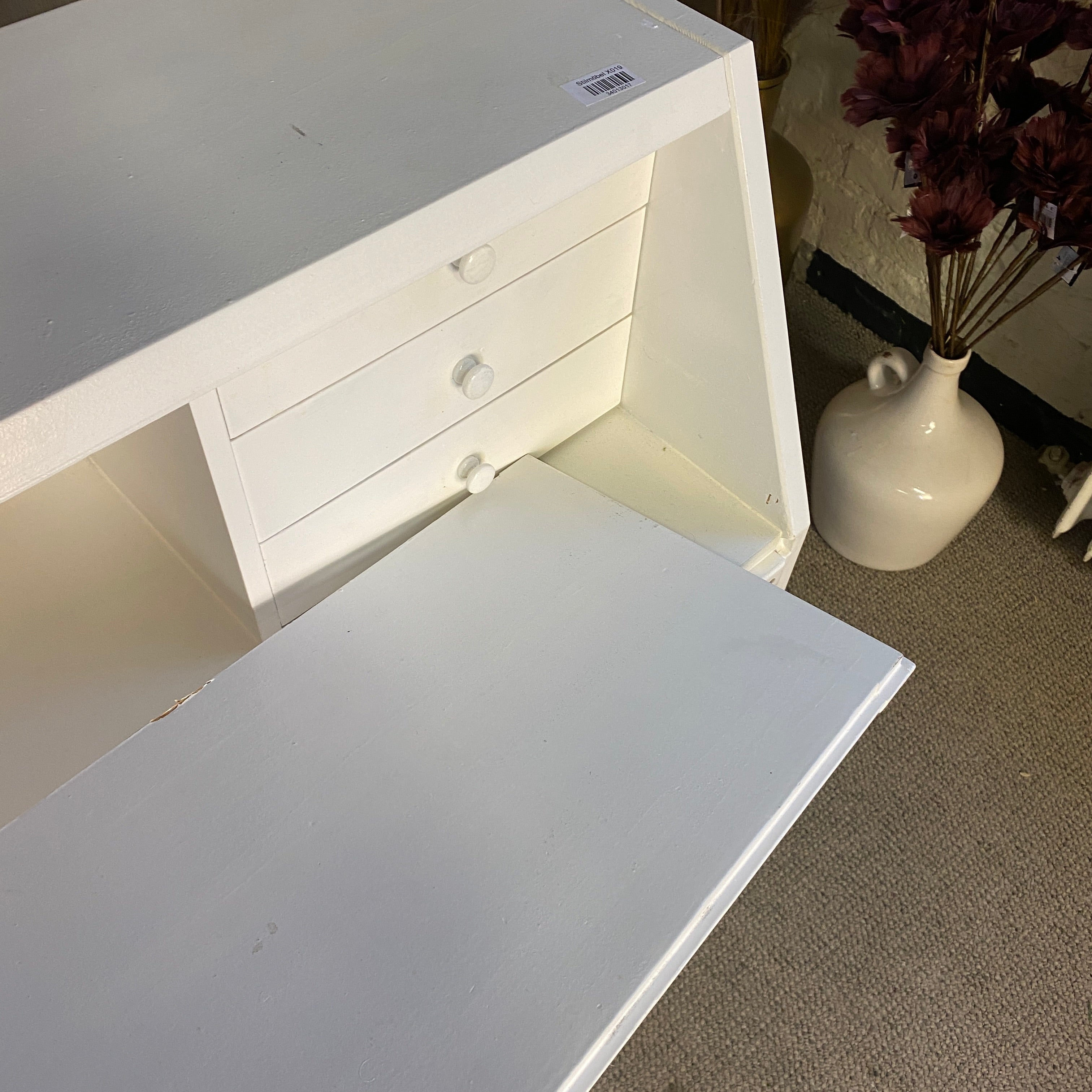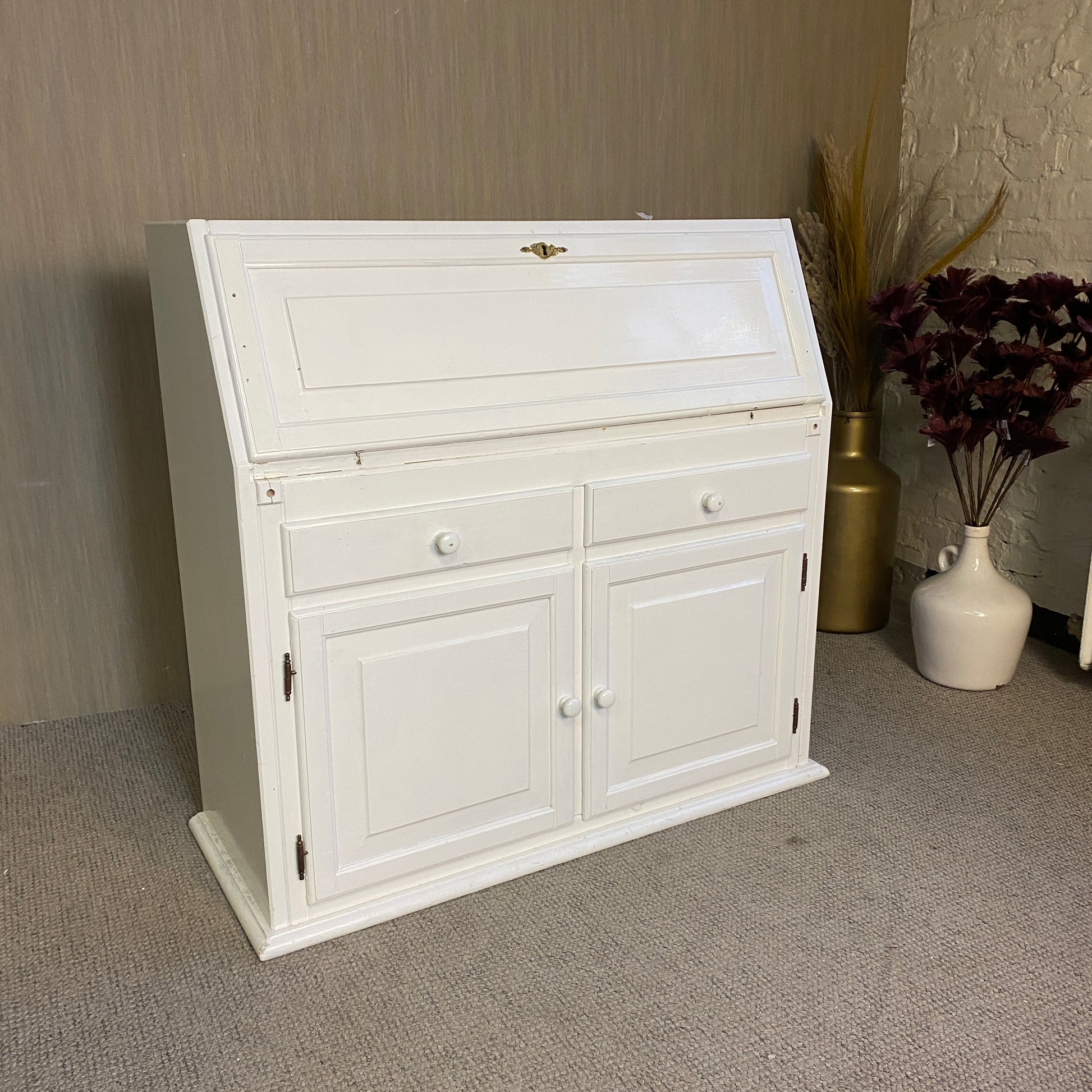 + Weißer Sekretär im charmanten Landhausstil mit klassischer Klappfront.