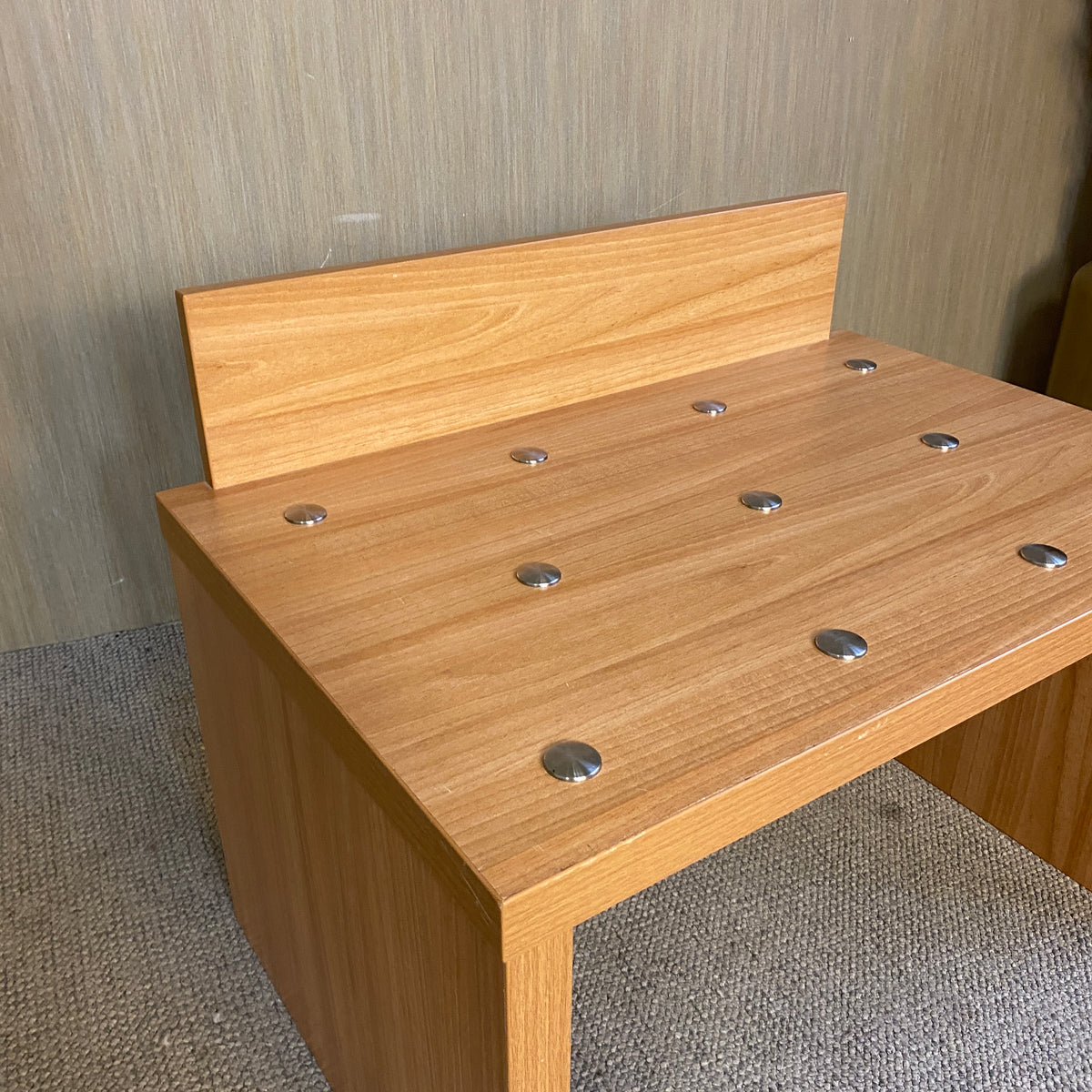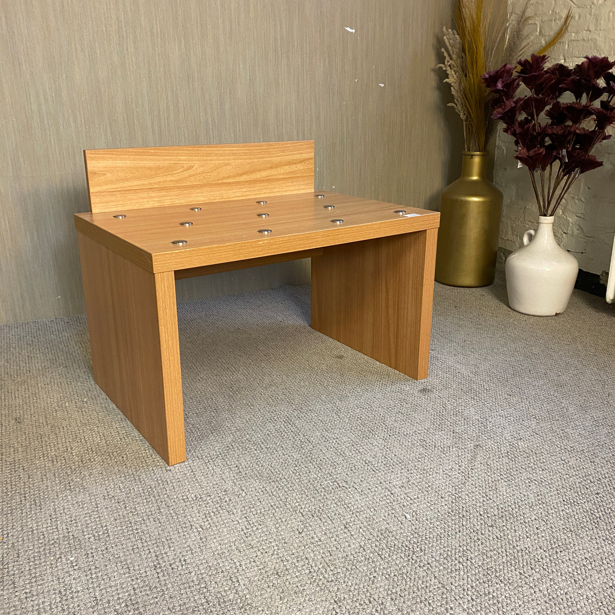 + Stabile Kofferbank aus Holzdekor – ideal zum Ablegen oder Packen von Gepäck.