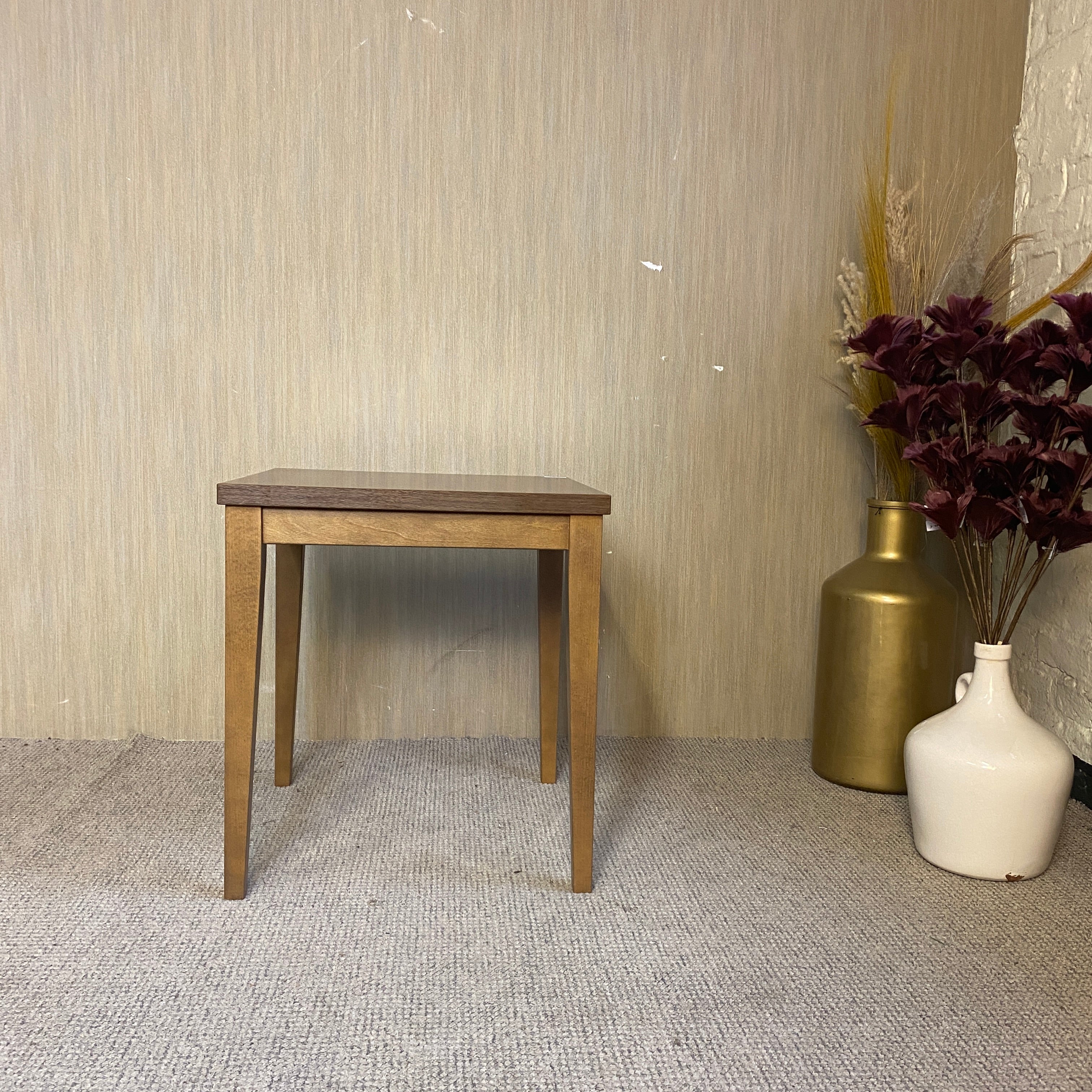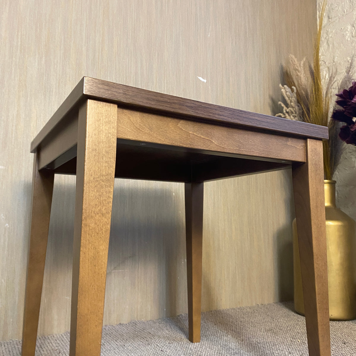 + Maße: 50 cm breit x 50 cm tief x 55 cm hoch+ Kleiner Holztisch in eleganter Nussbaumoptik mit geradlinigem, zeitlosem Design.
