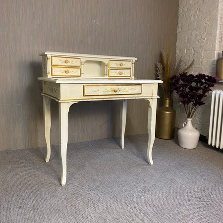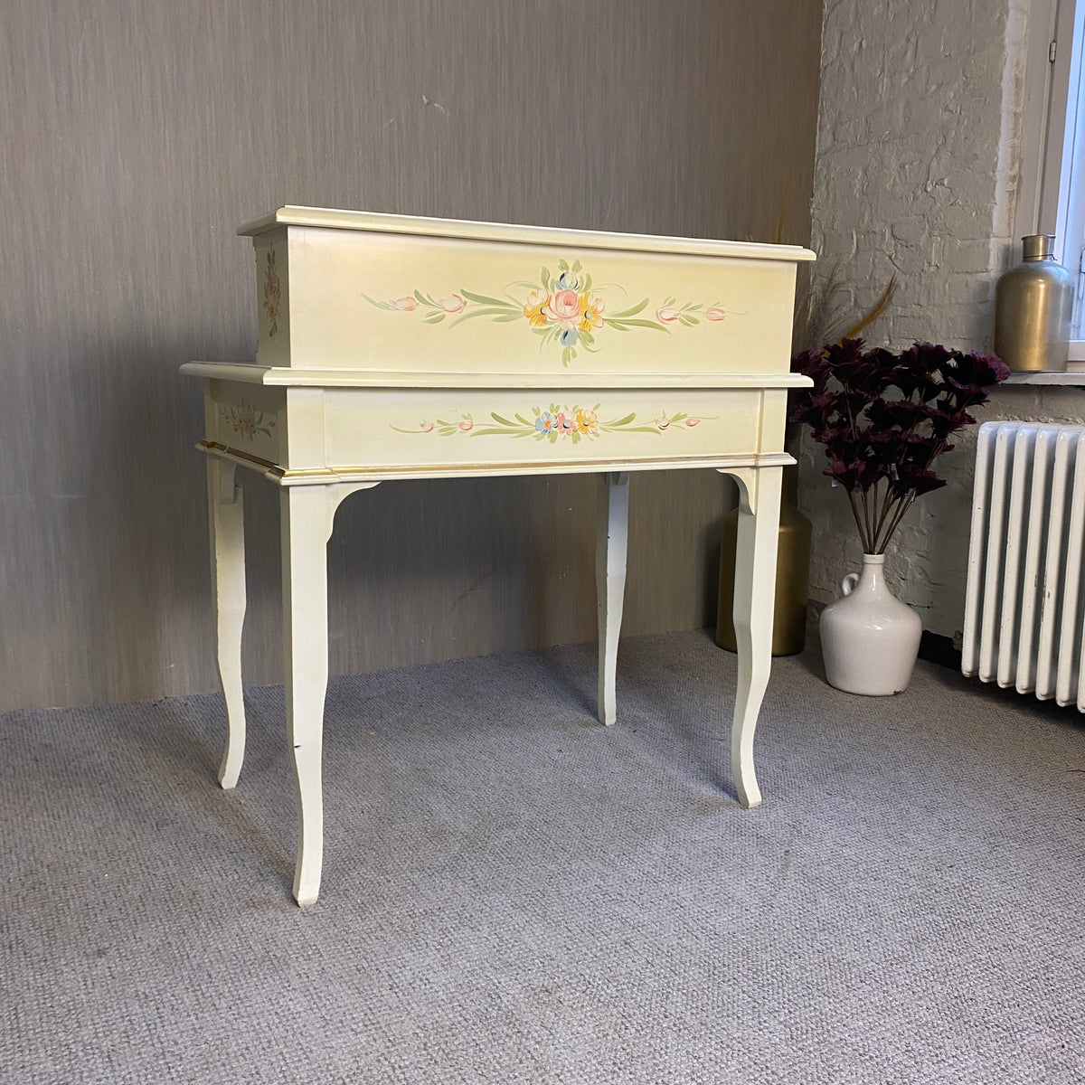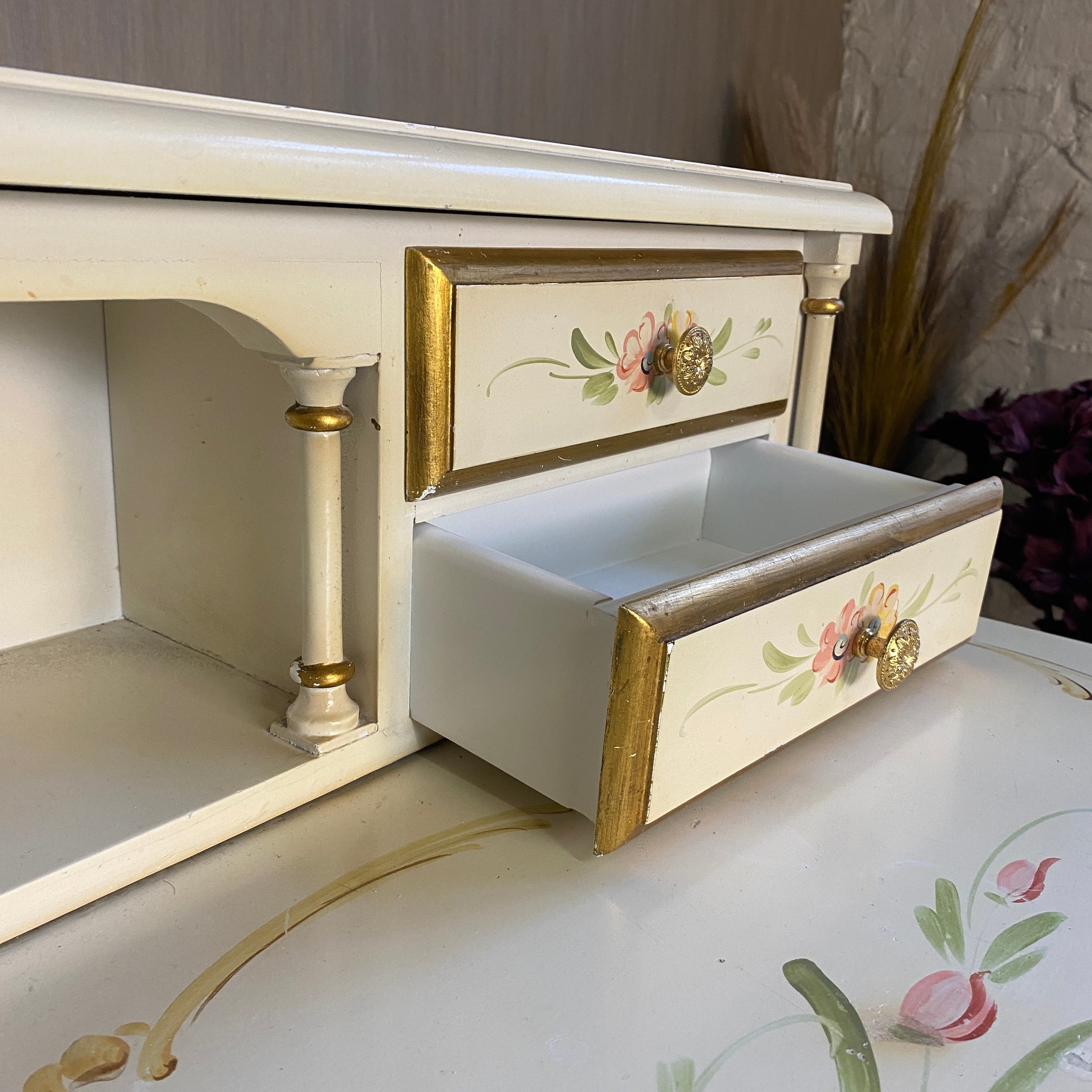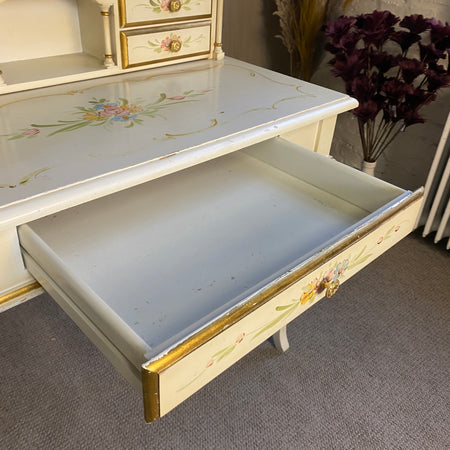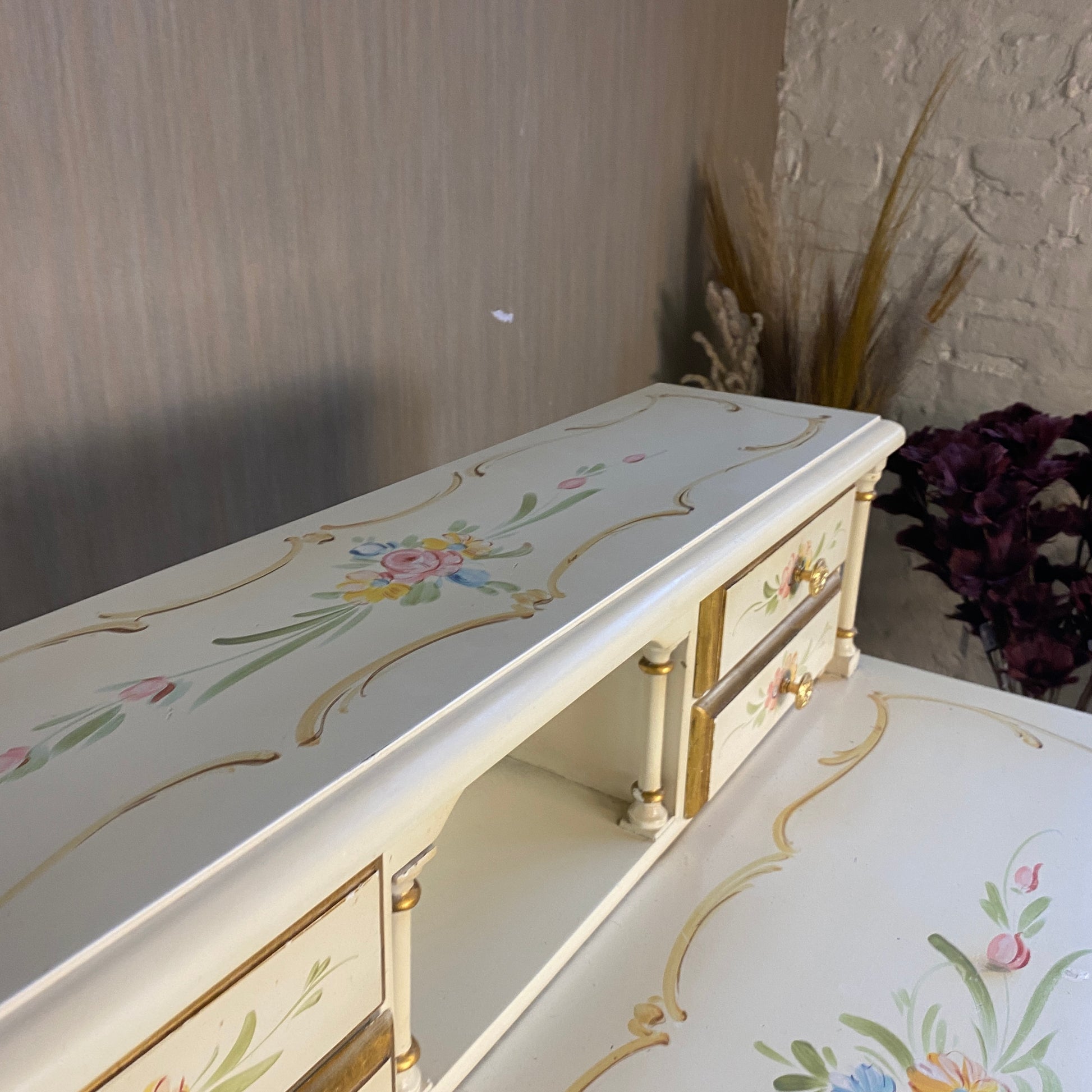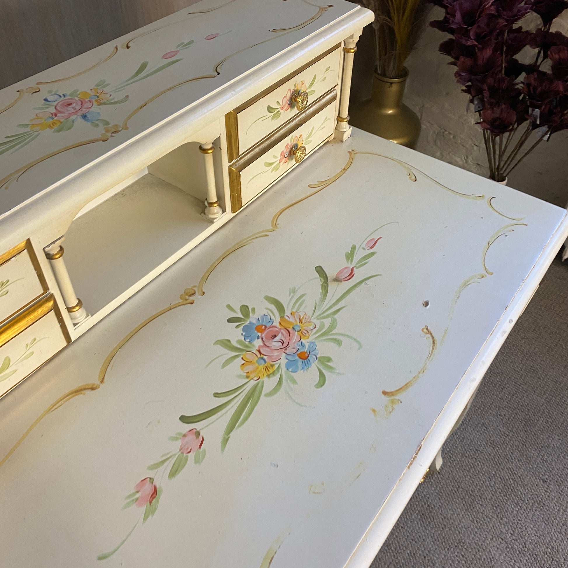 + Hübscher Shabby-Chic Schreibtisch mit liebevoll handbemalten Blumenmotiven.