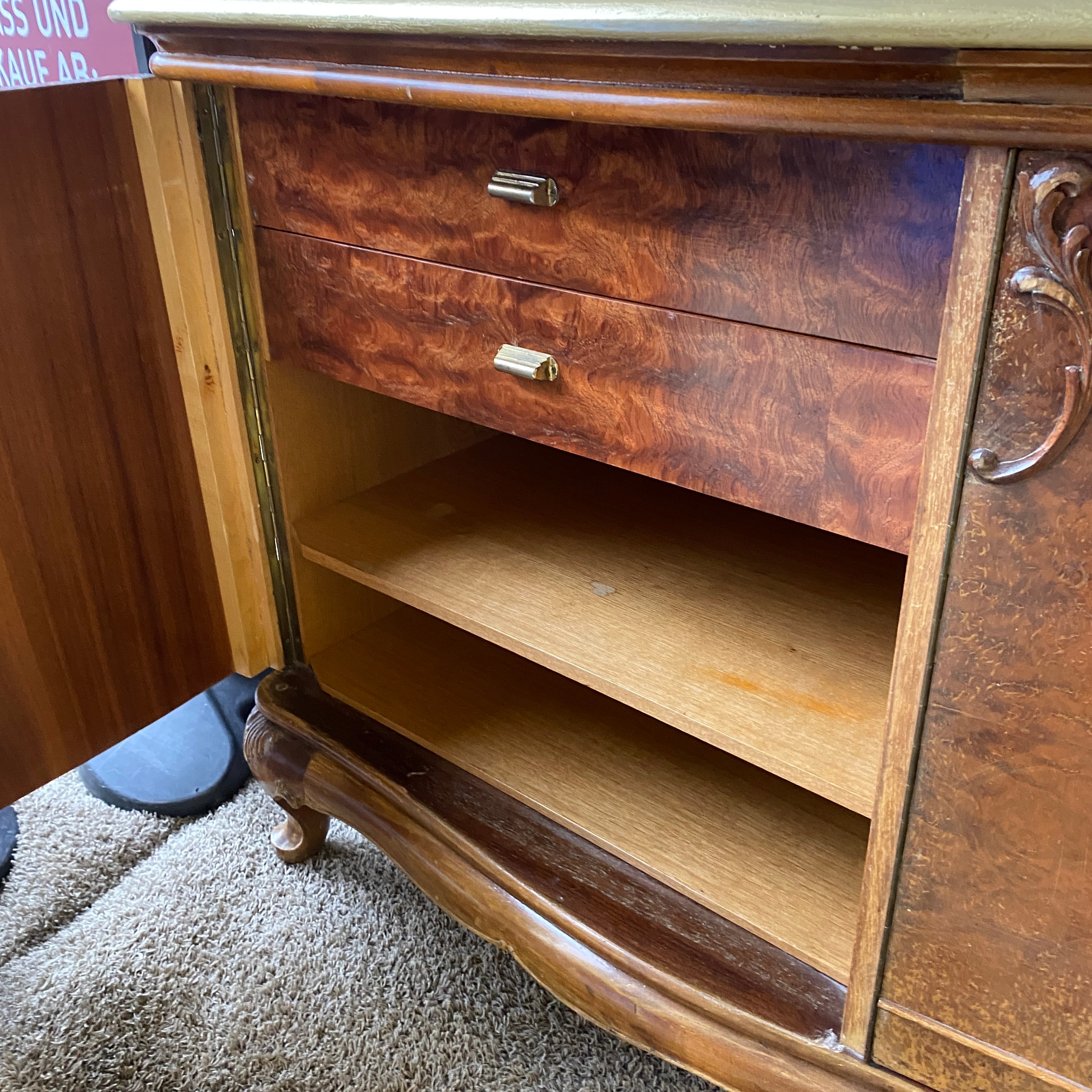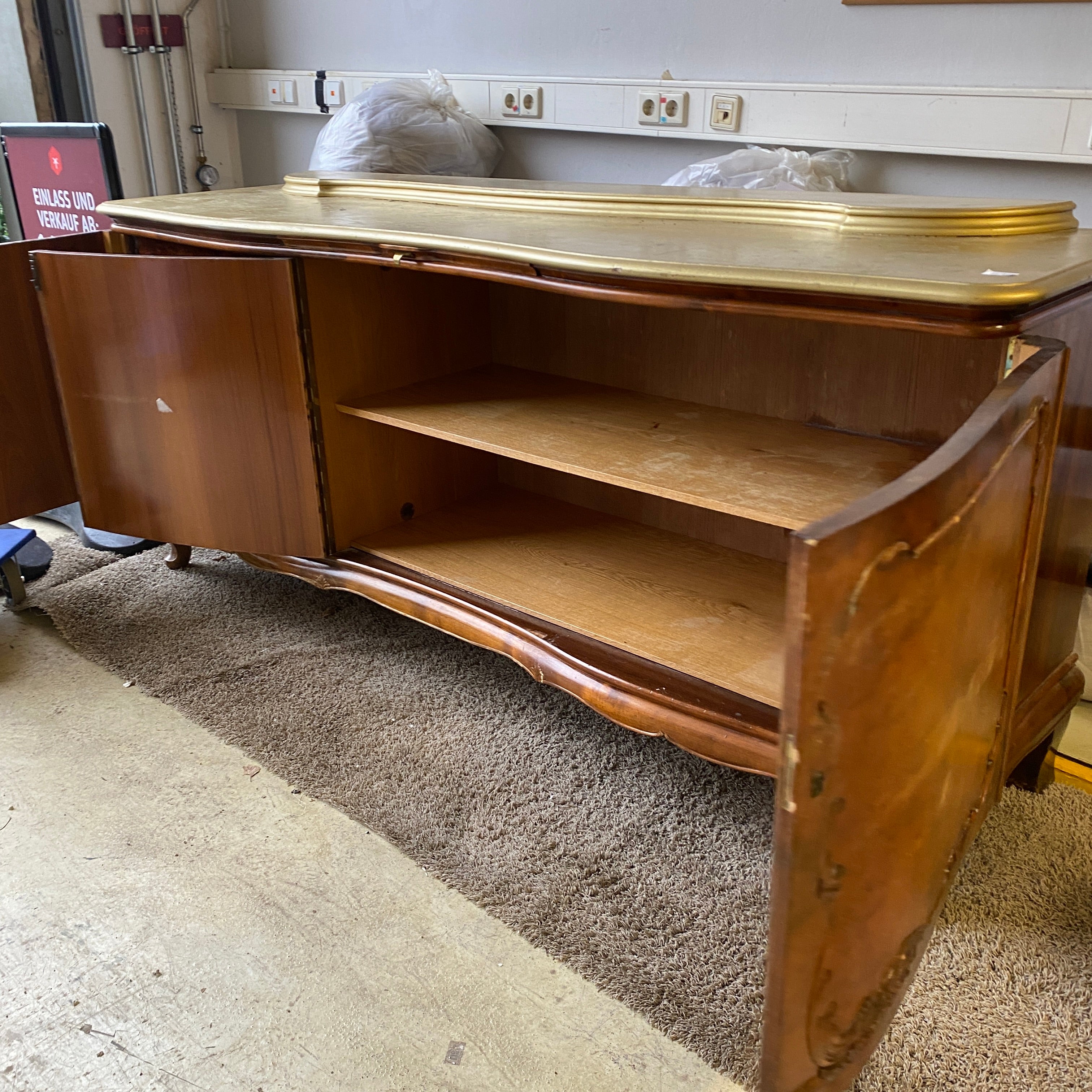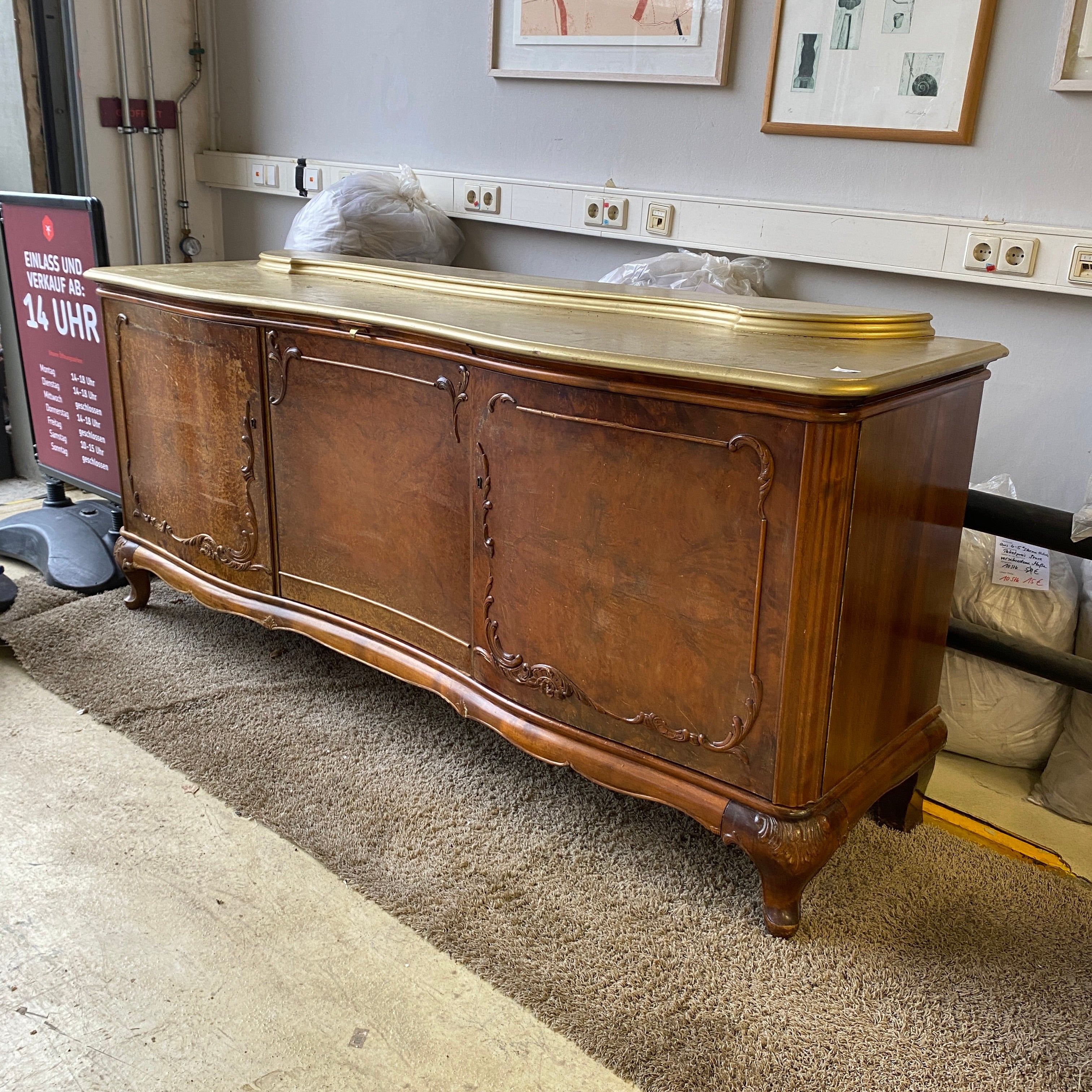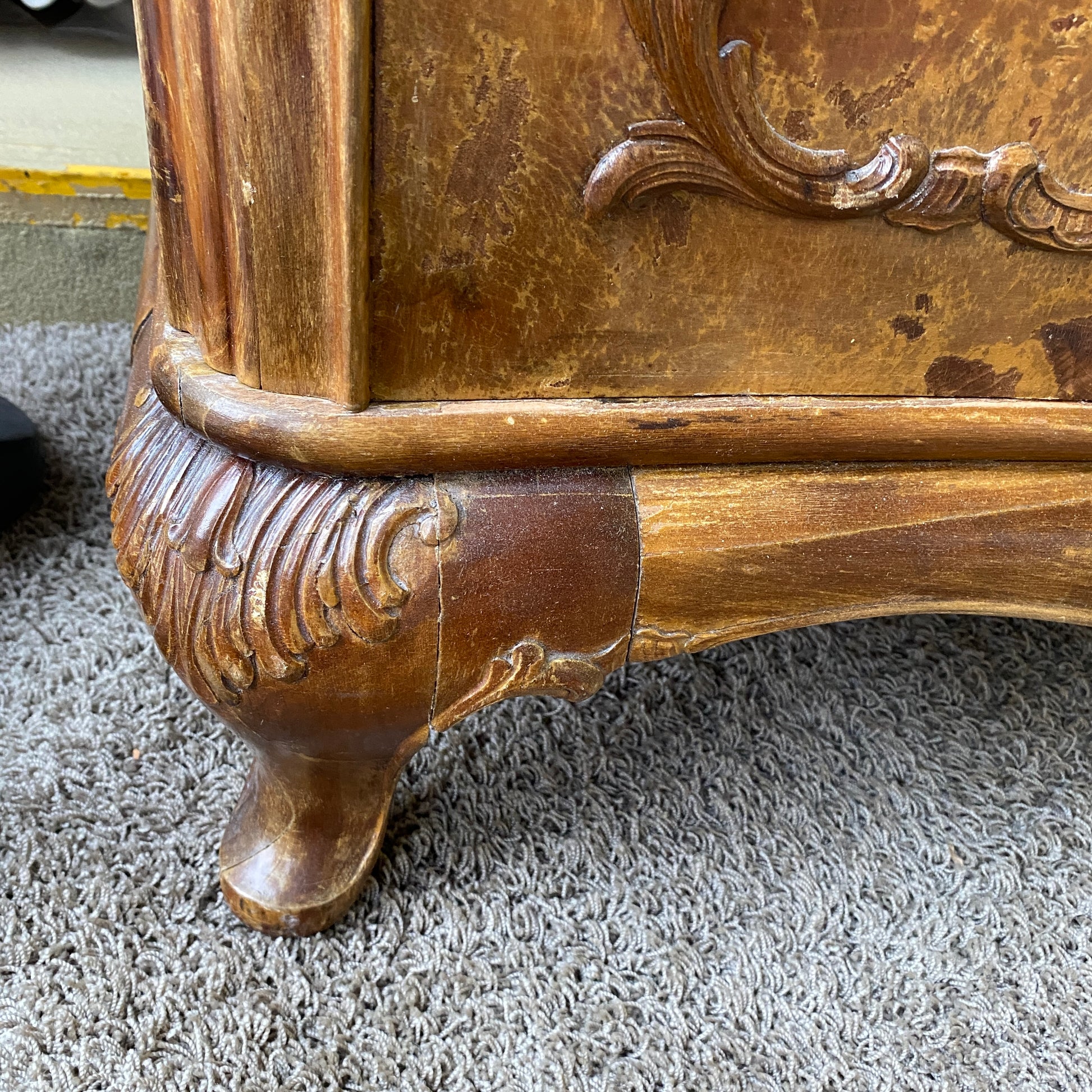 + Großzügige antike Kommode aus massivem Holz mit kunstvoll geschwungenen Türen.