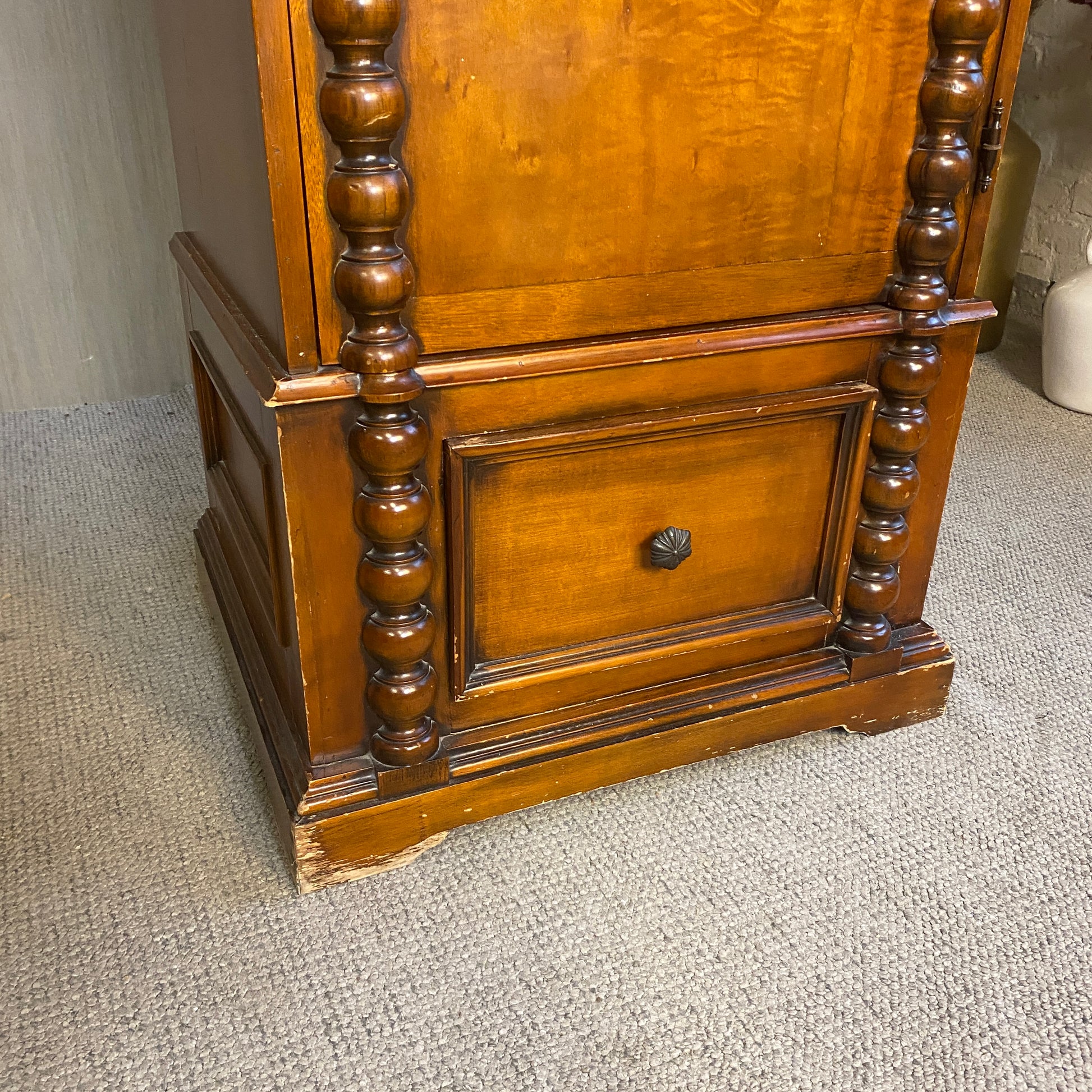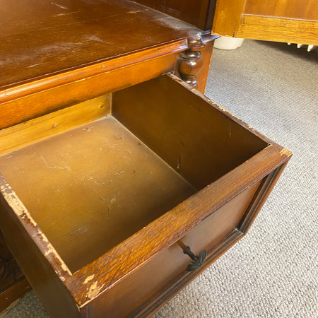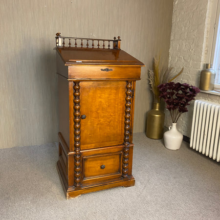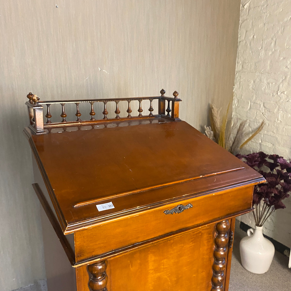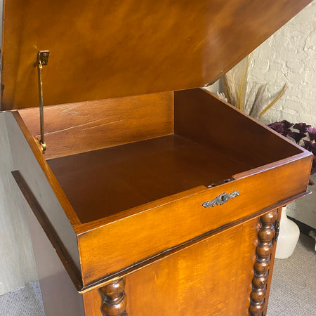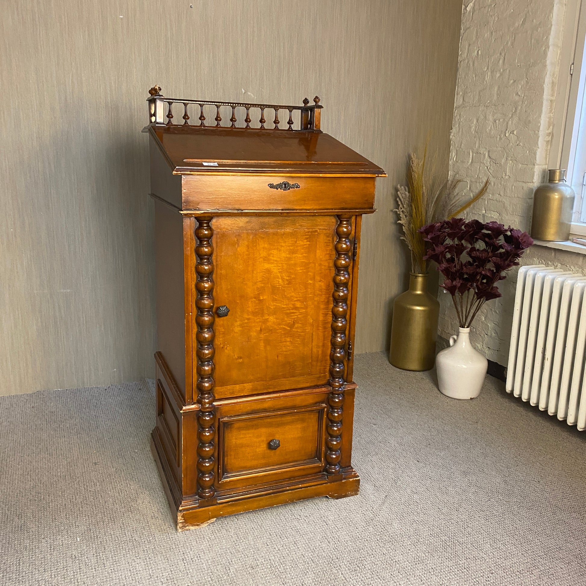 + Wunderschöner antiker Holzschrank mit aufklappbarem Deckel und zusätzlicher Schublade.