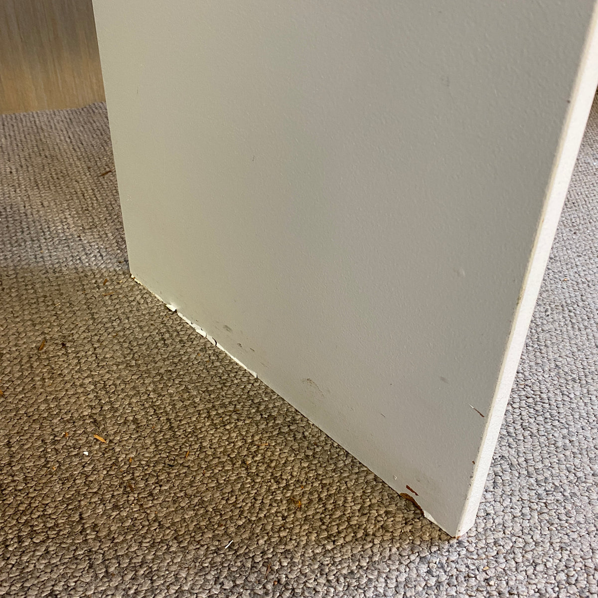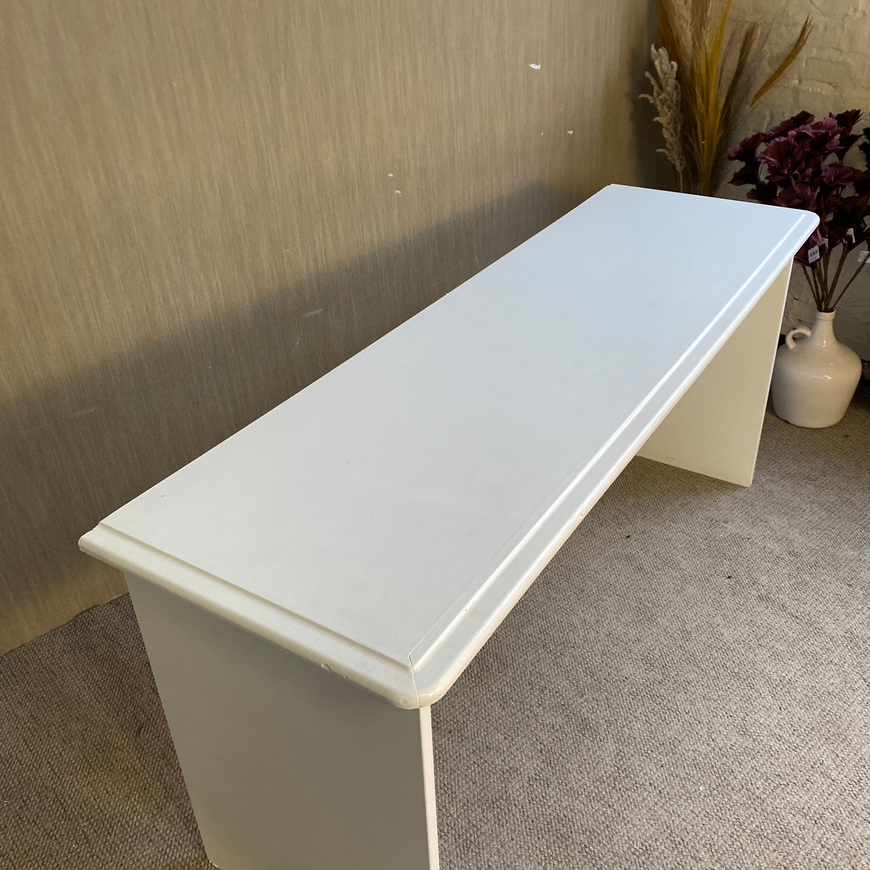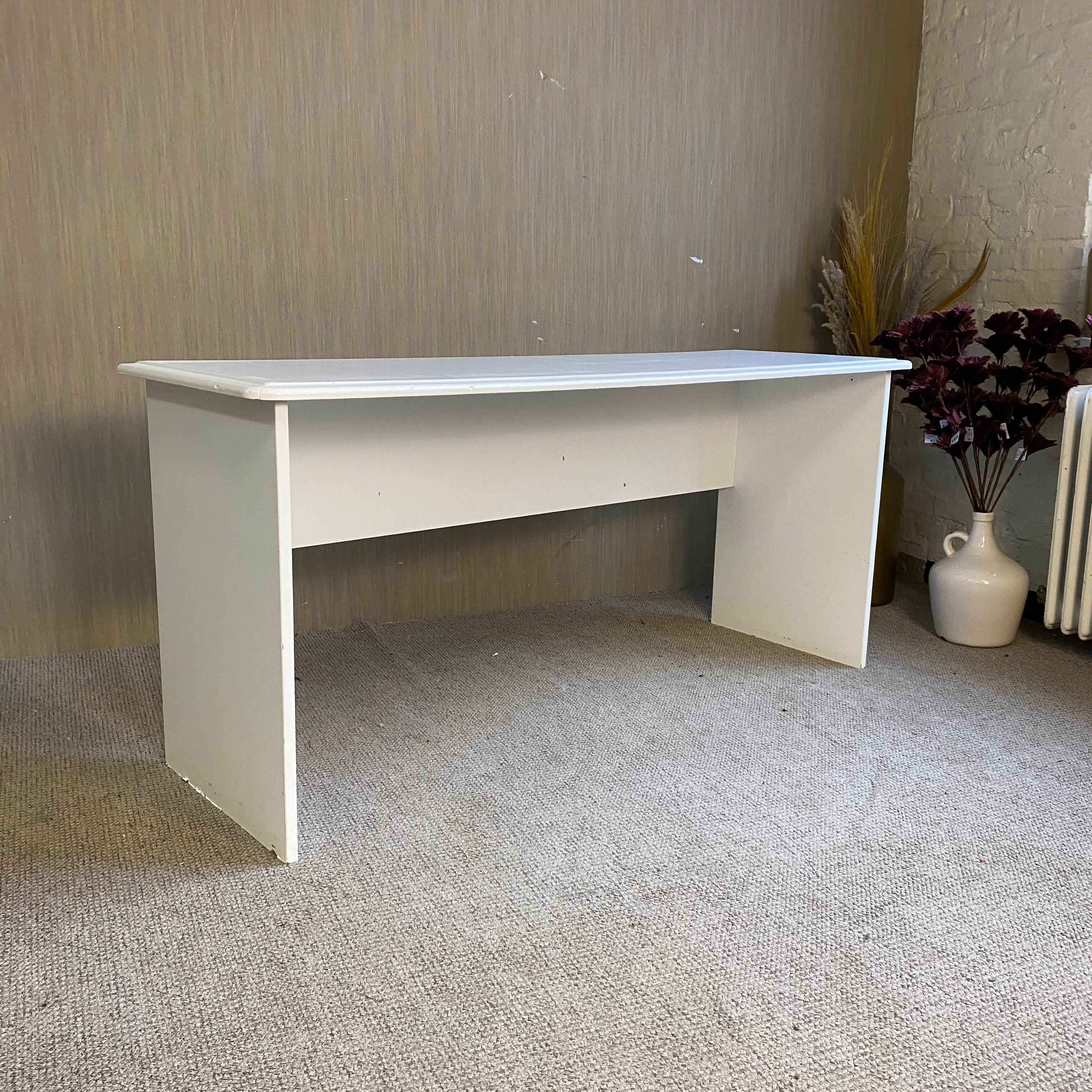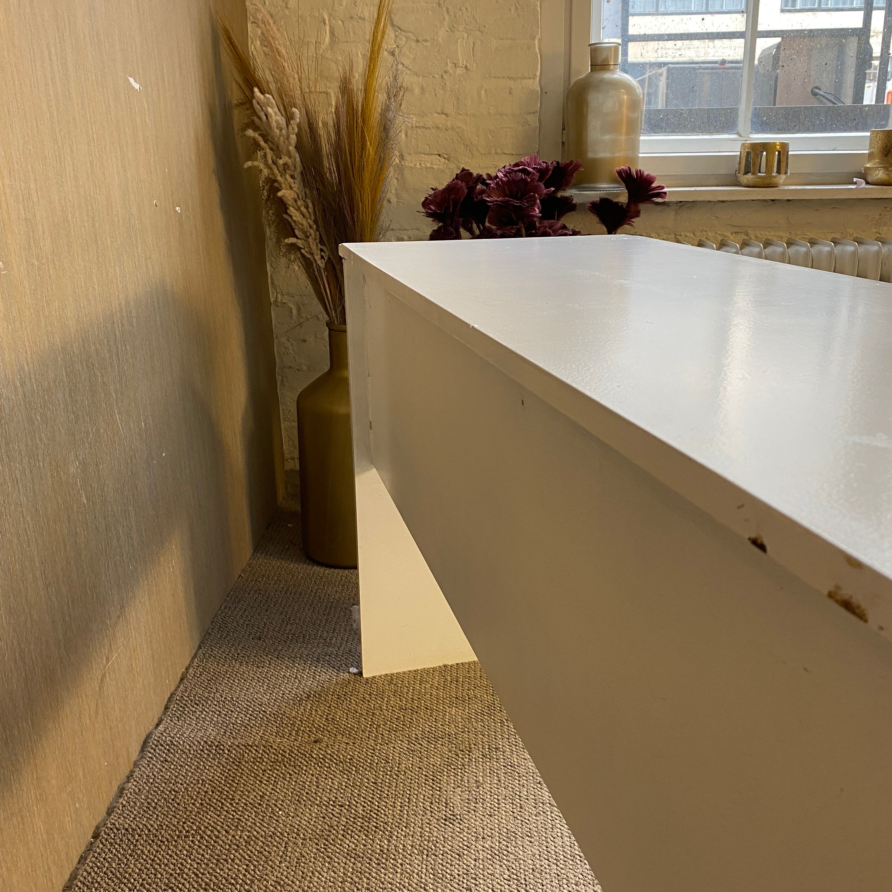 + Schlichter weißer Schreibtisch im modernen, minimalistischen Stil.