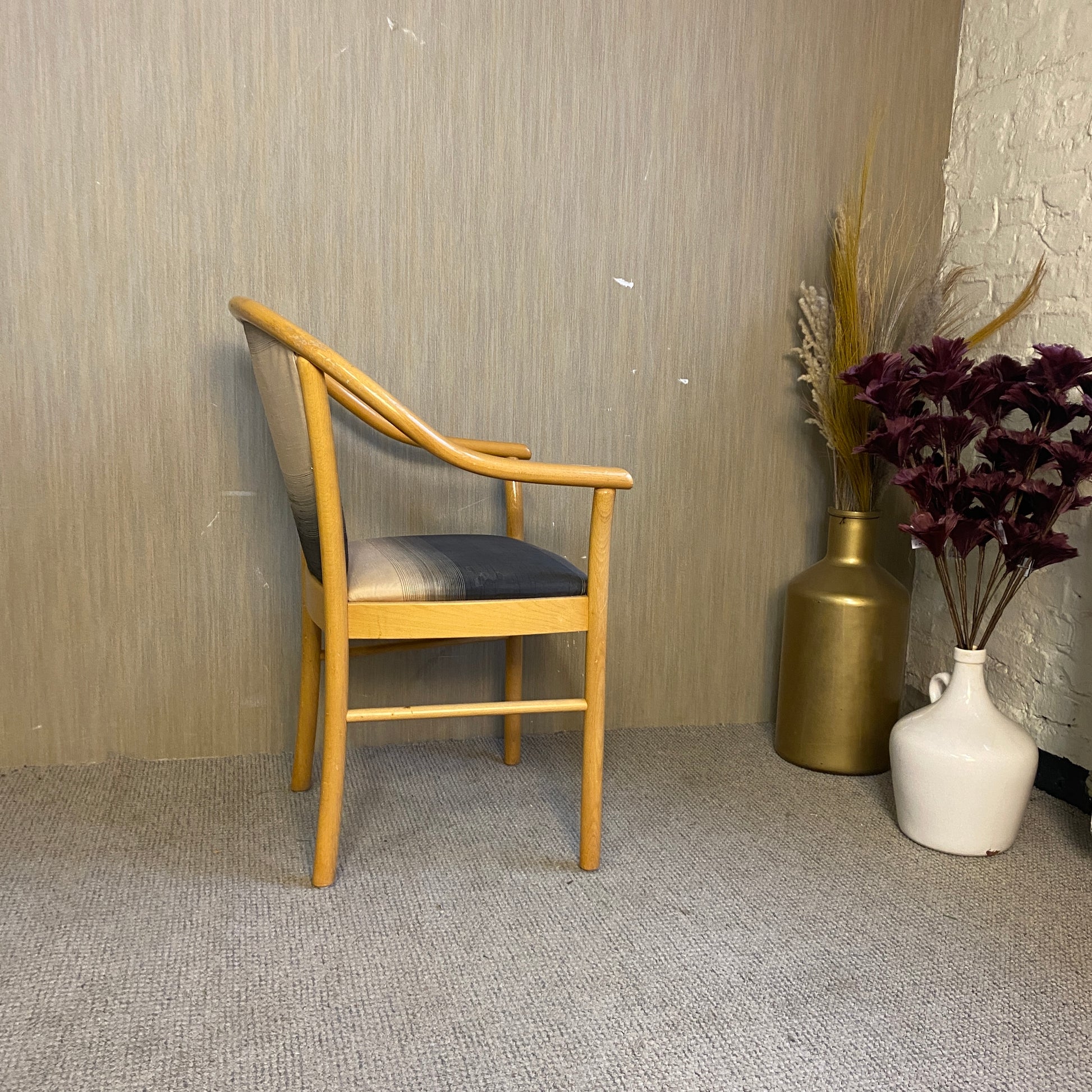 + Moderner Esszimmerstuhl mit elegant geschwungener Rundbogenlehne.