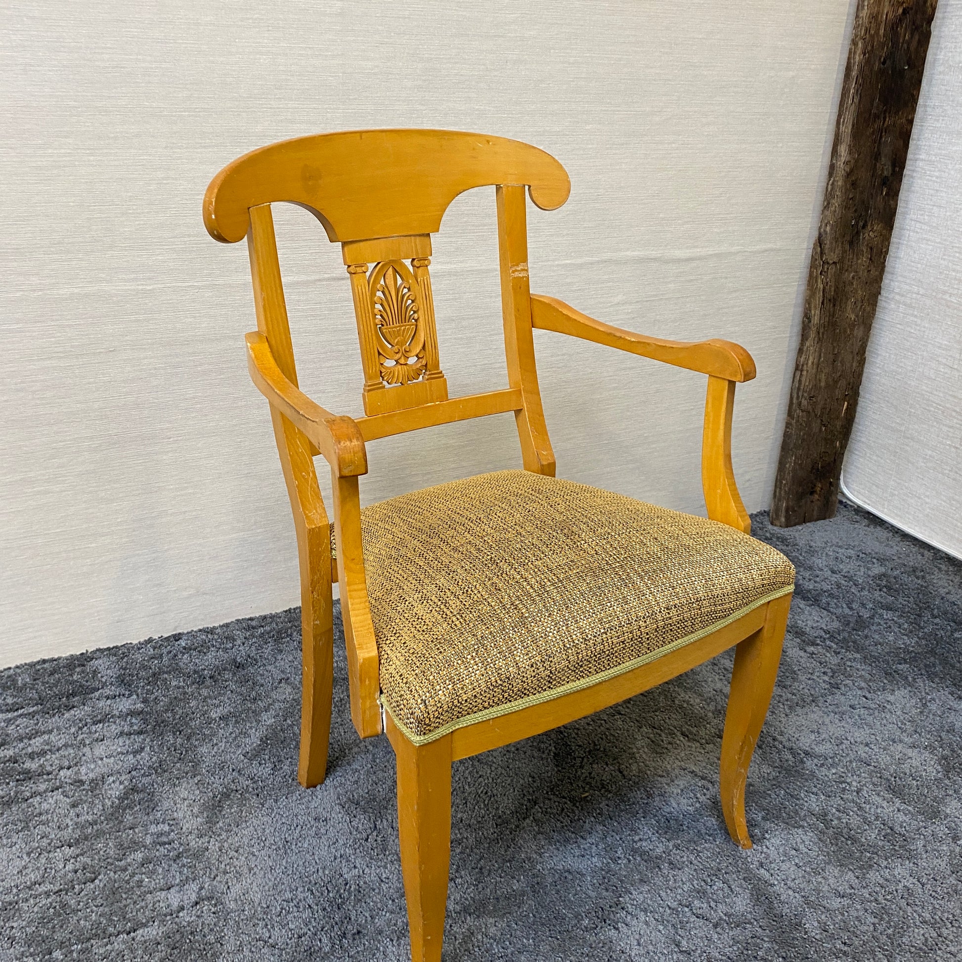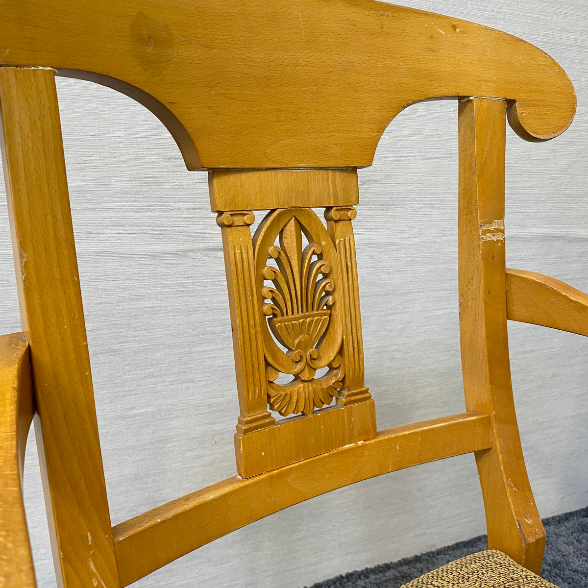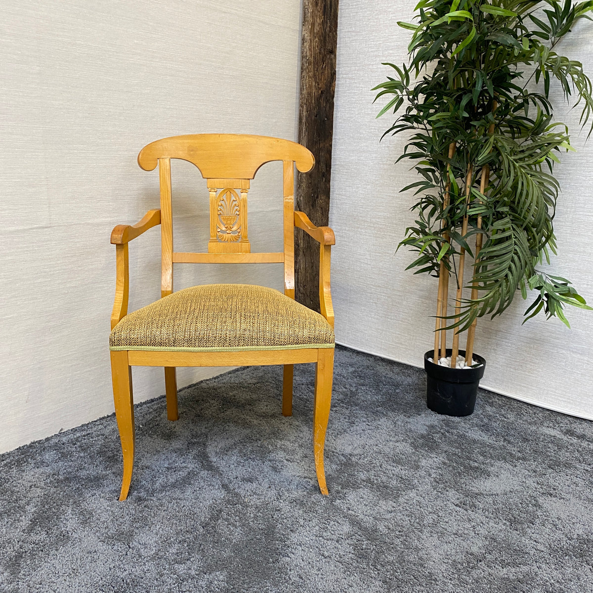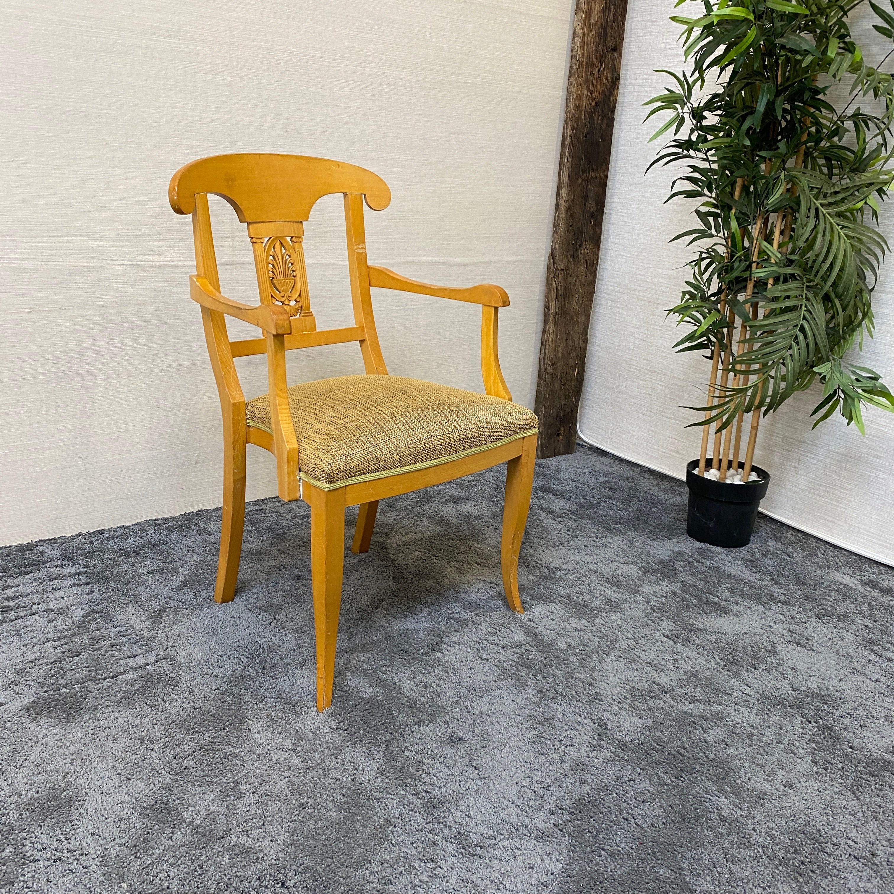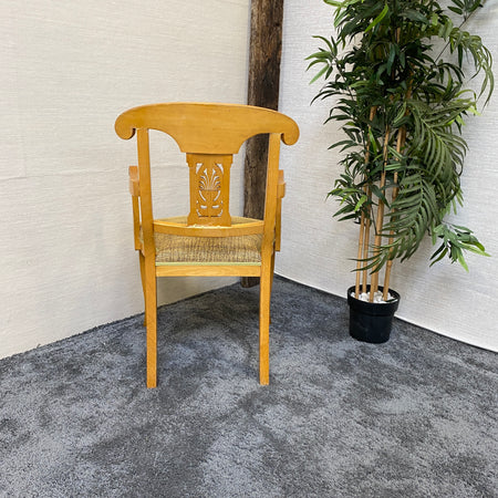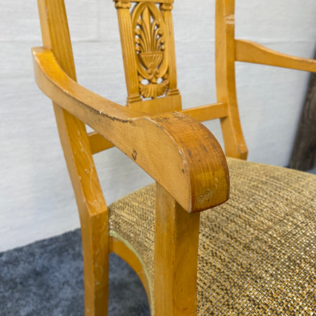 + Klassischer Holz-Armlehnstuhl mit dekorativer Rückenlehnen-Schnitzerei