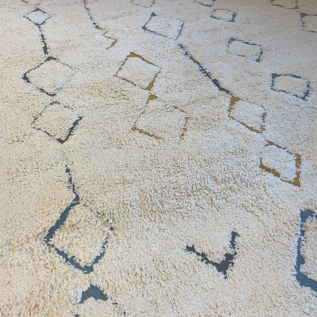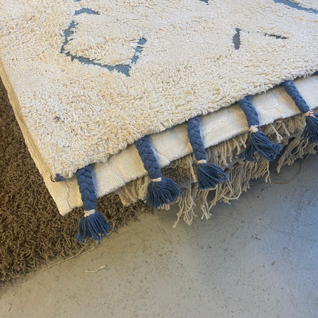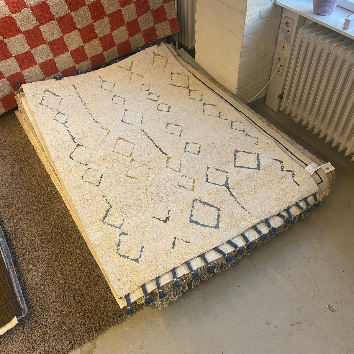 + Hochwertiger Teppich in Creme mit blauen Rauten.