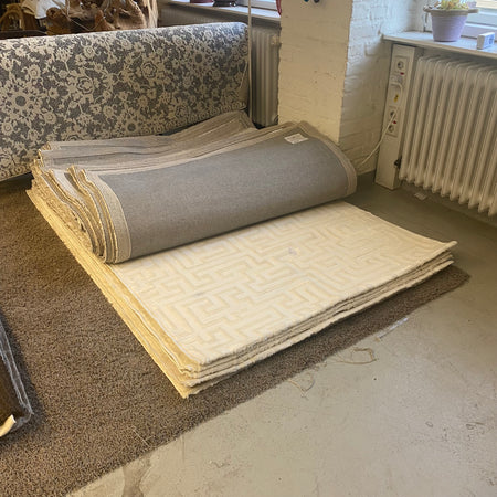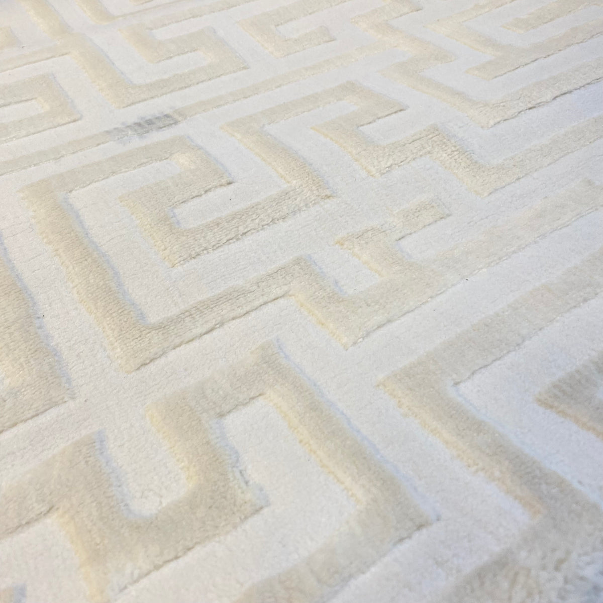 + Moderner Teppich in Creme mit geometrischem Reliefmuster.