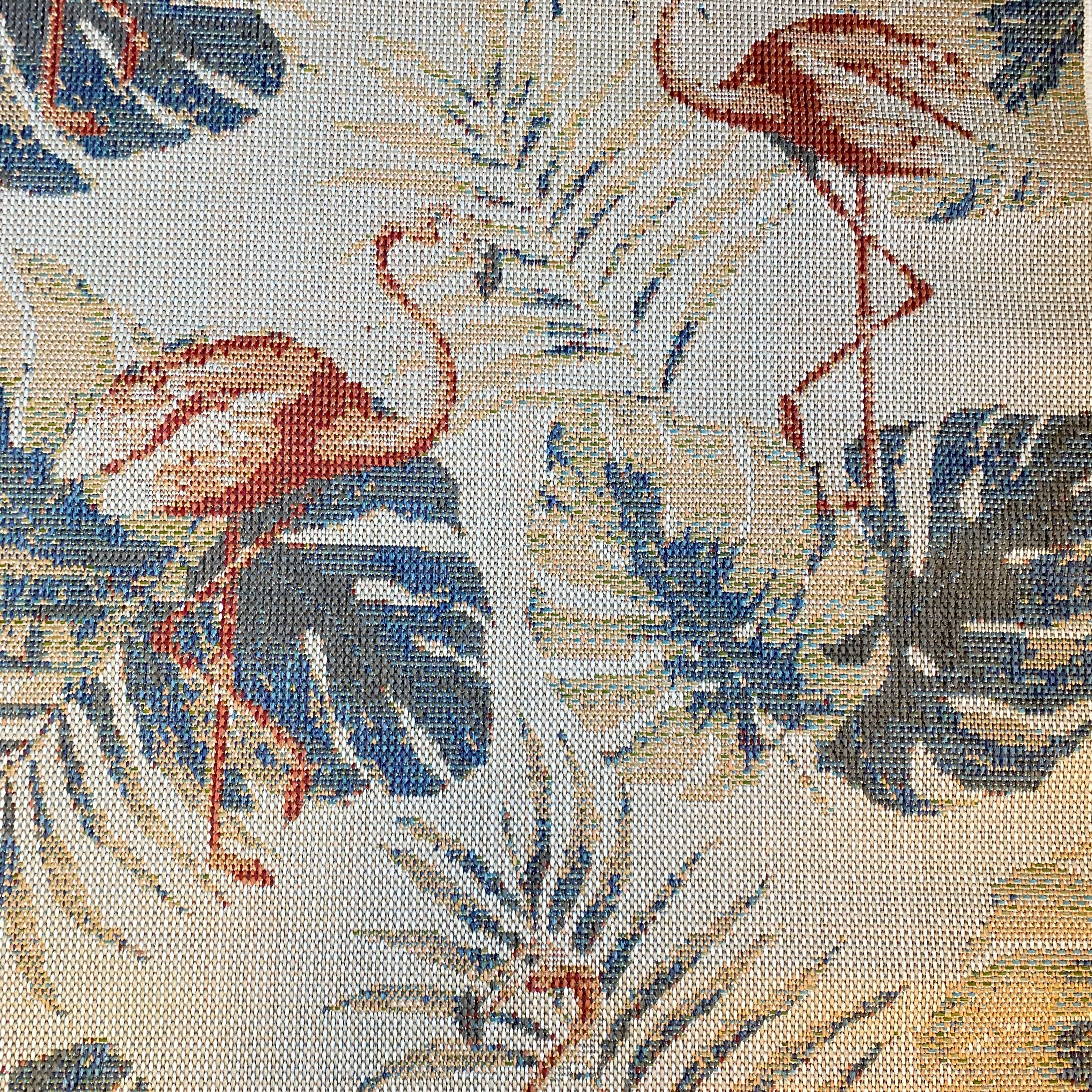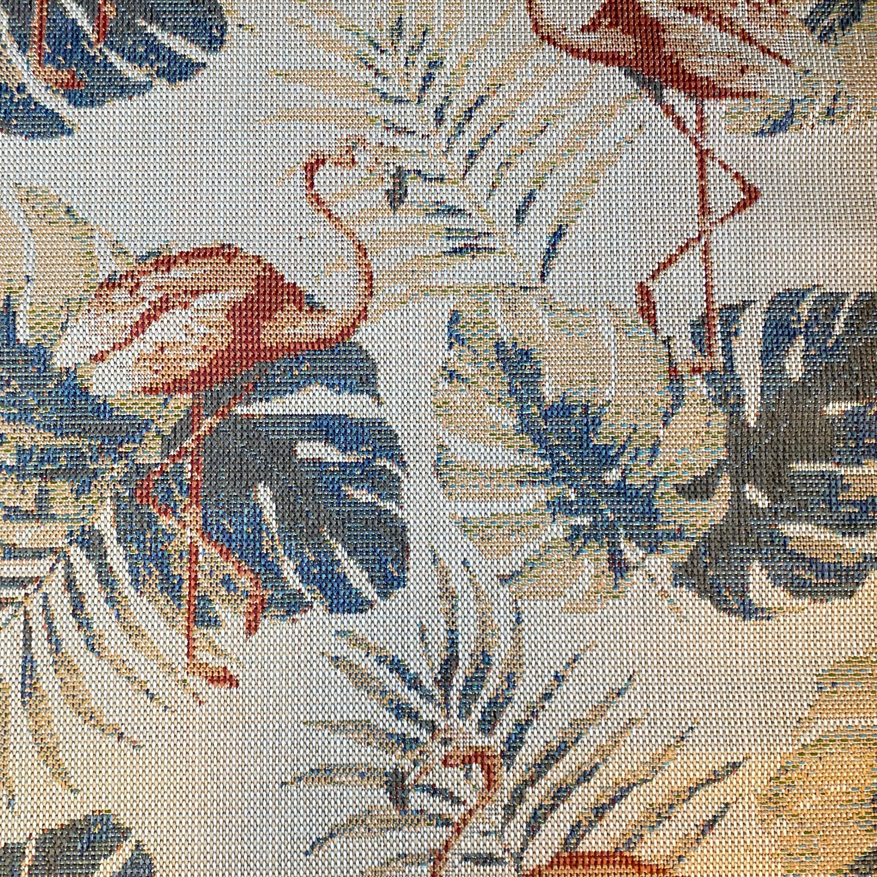+ Multicolour-Design: warme Rot- und Blautöne mit tropischen Blättern und Flamingos