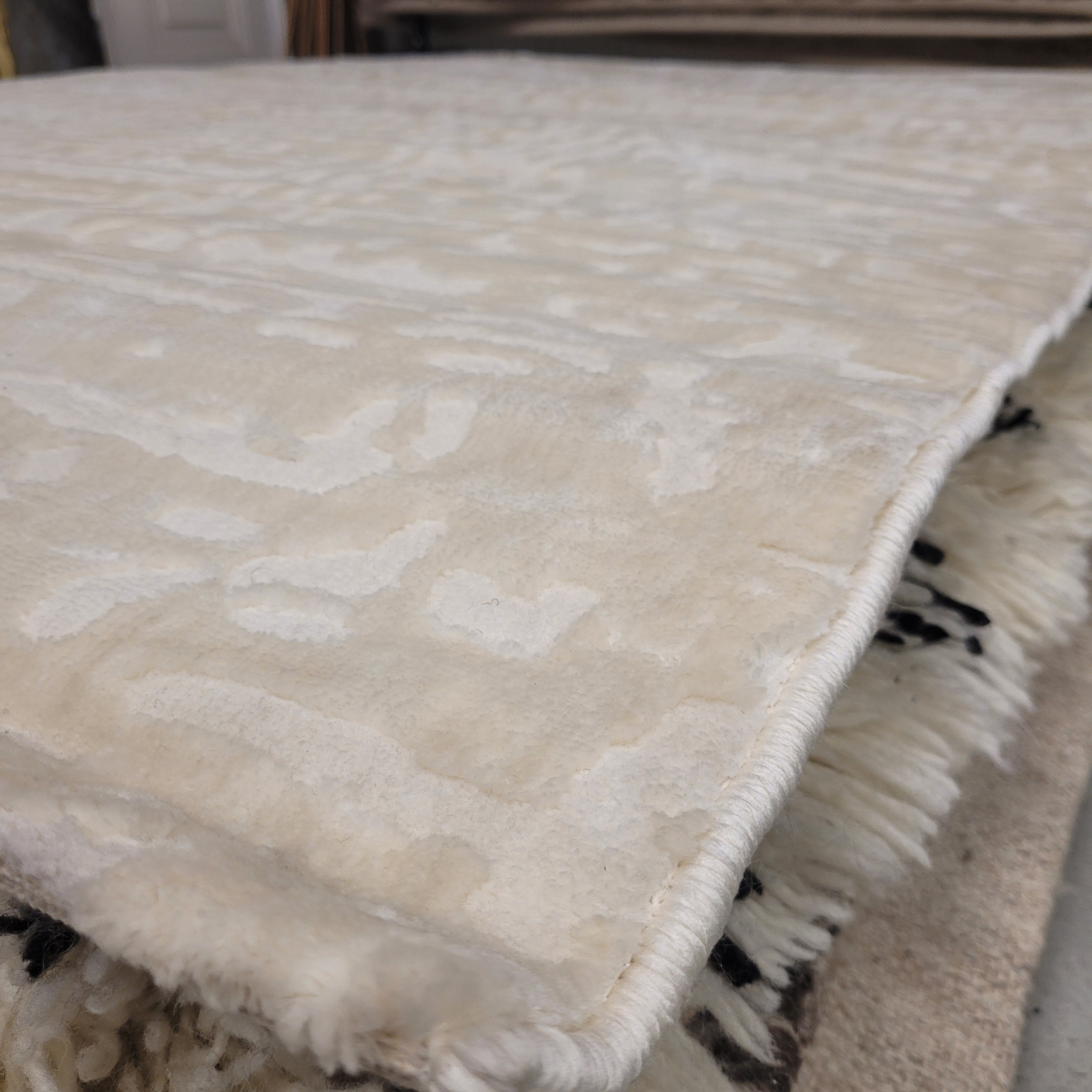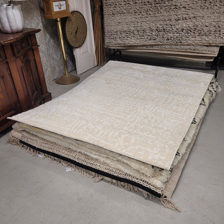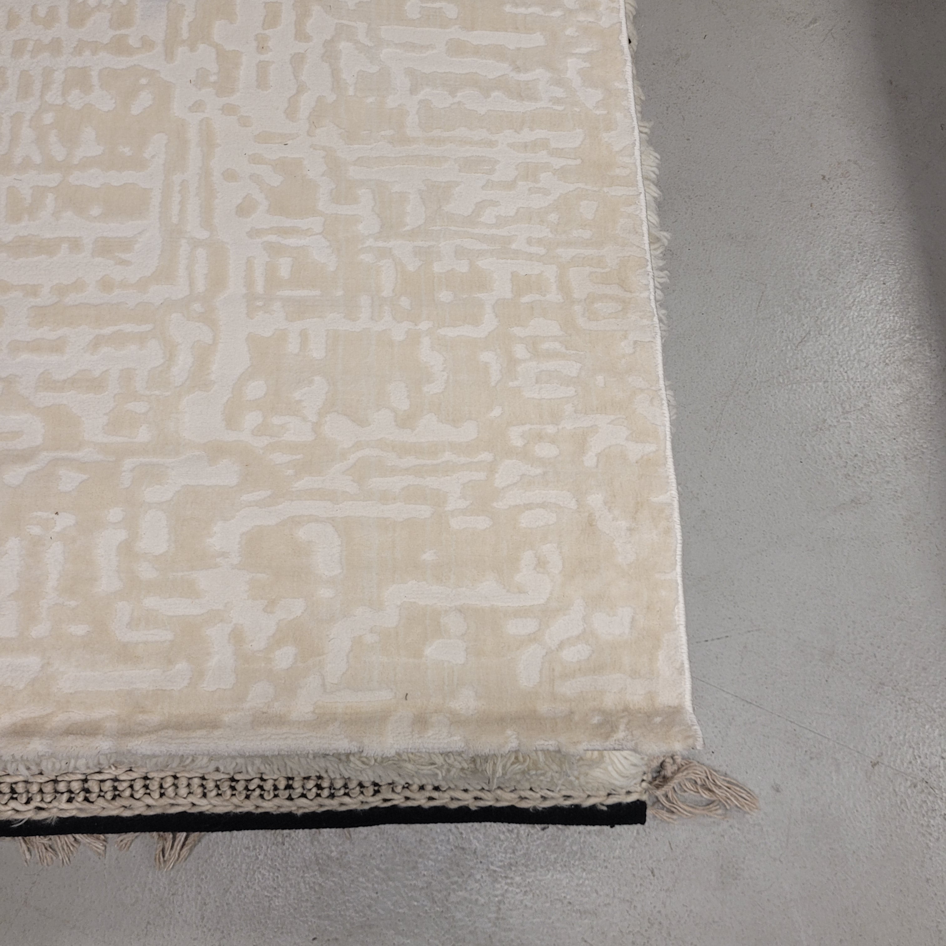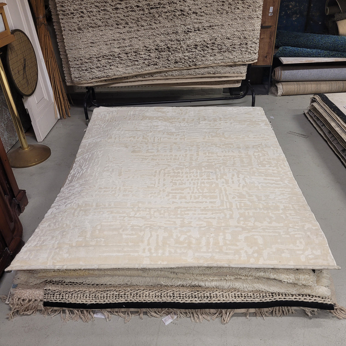 + Moderner Teppich in Creme mit dezentem, abstraktem Strukturmuster.