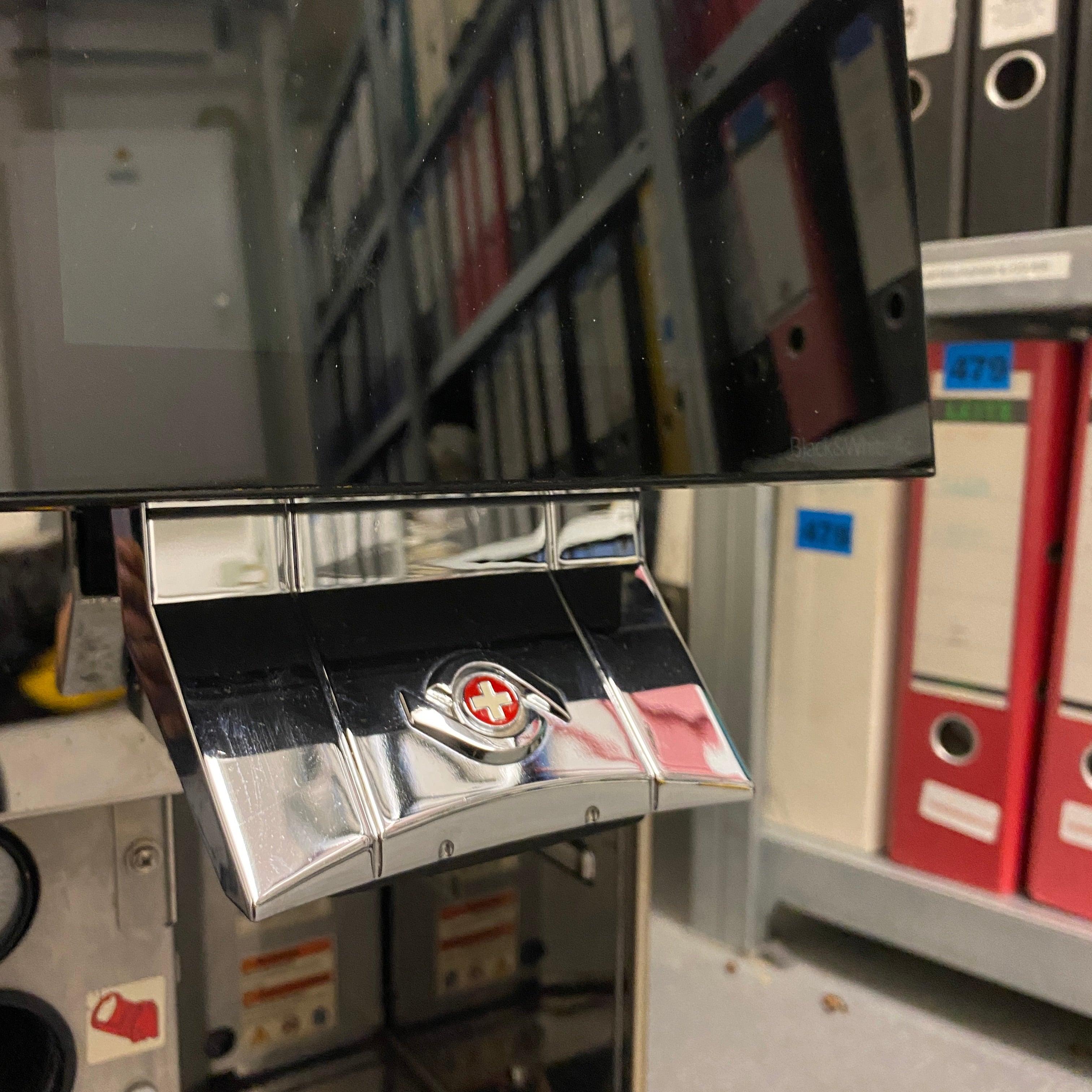 + Edelstahlgehäuse in modernem Spiegel-Design – sehr robust und pflegeleicht