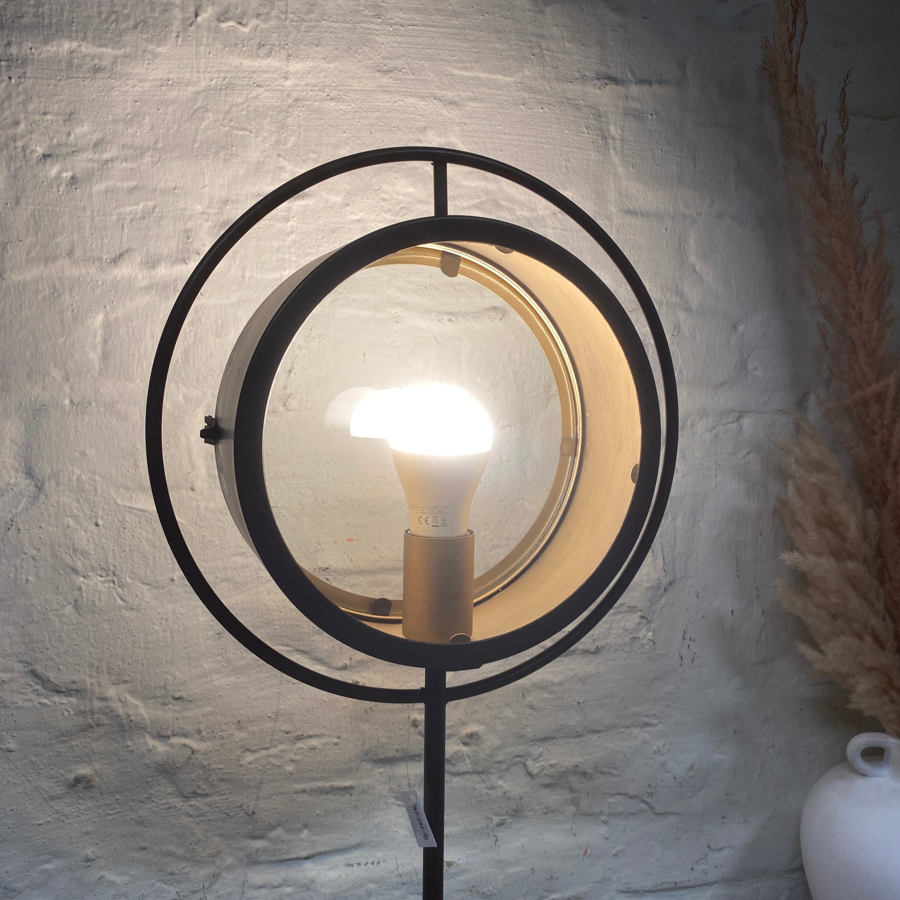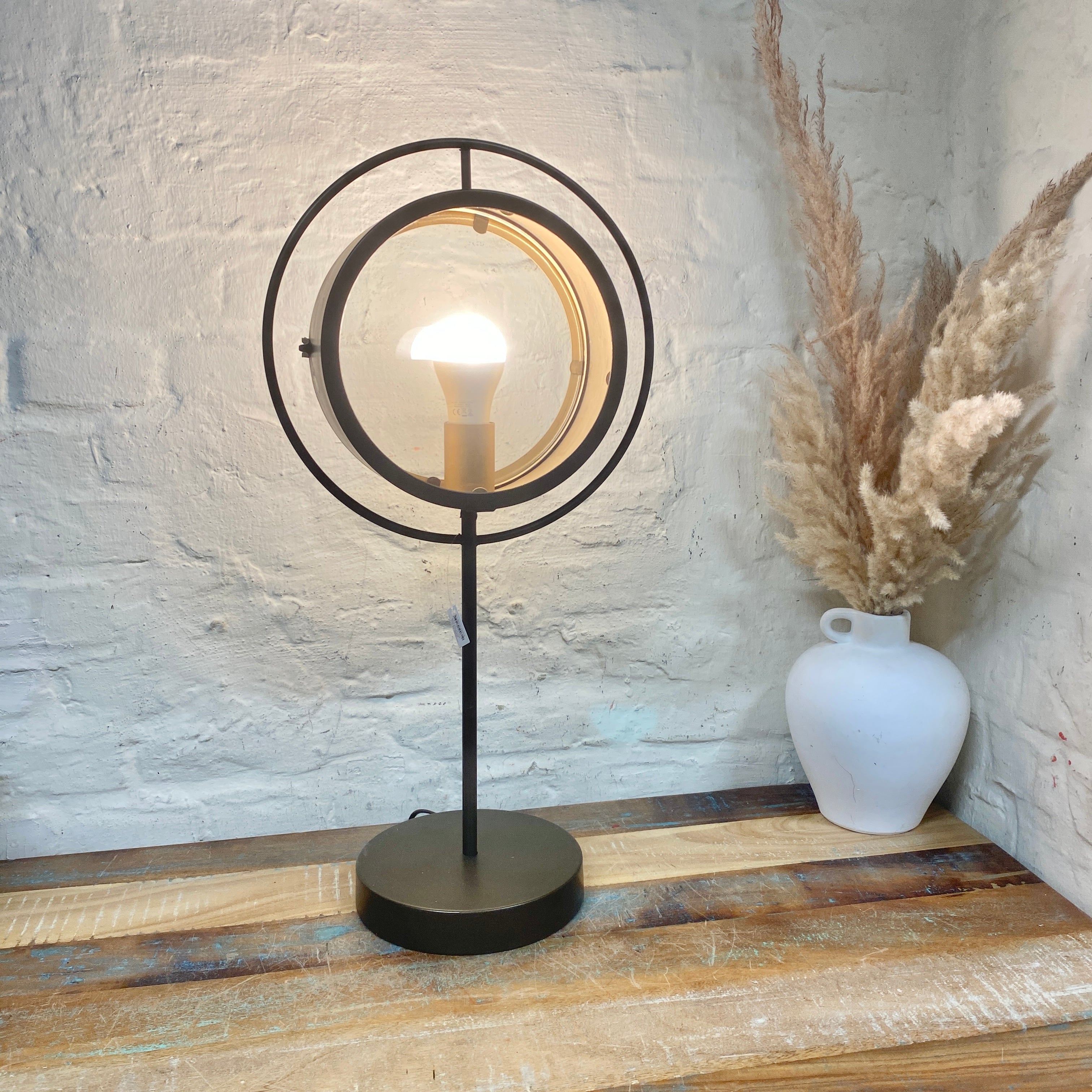 + Moderne Tischleuchte mit rundem Metallrahmen