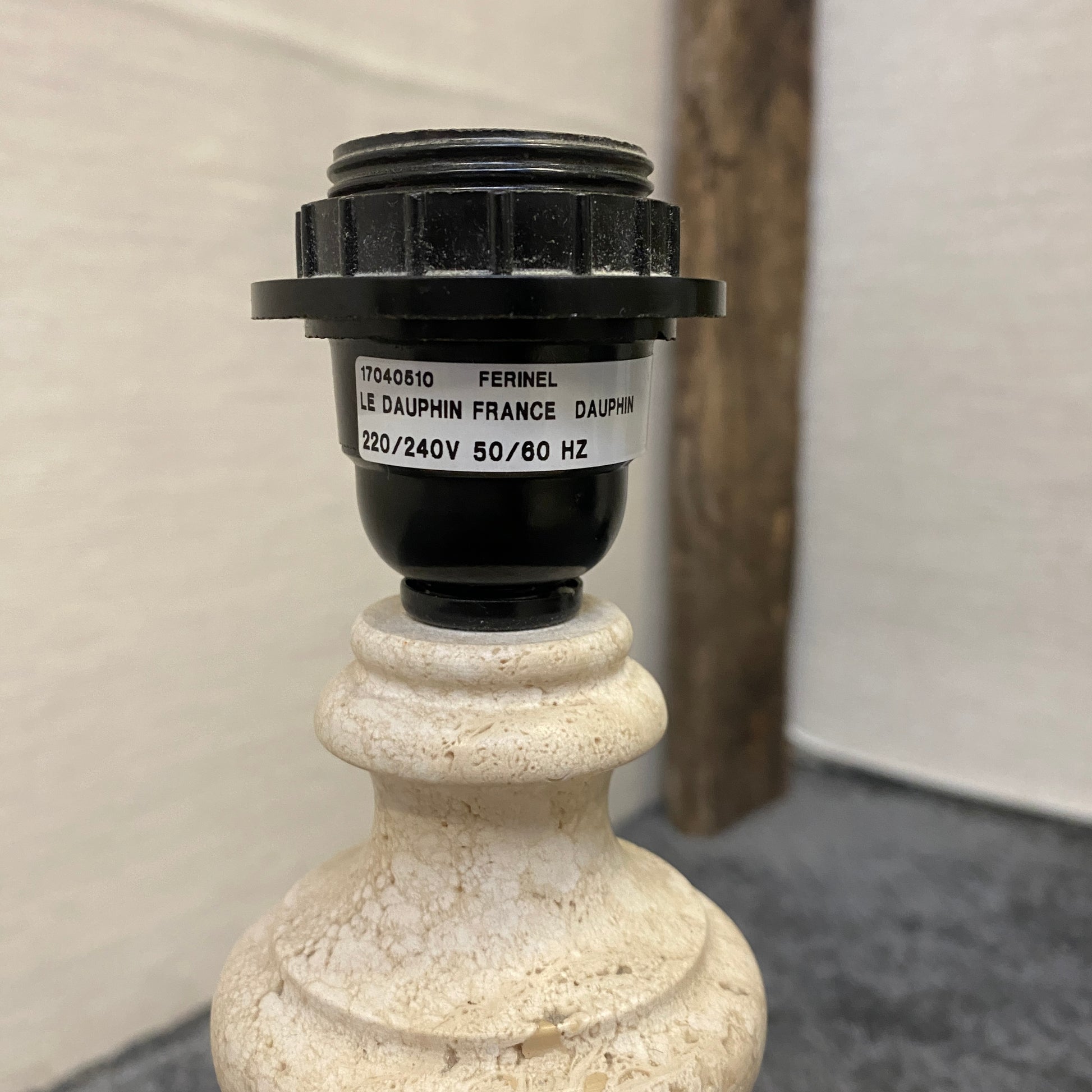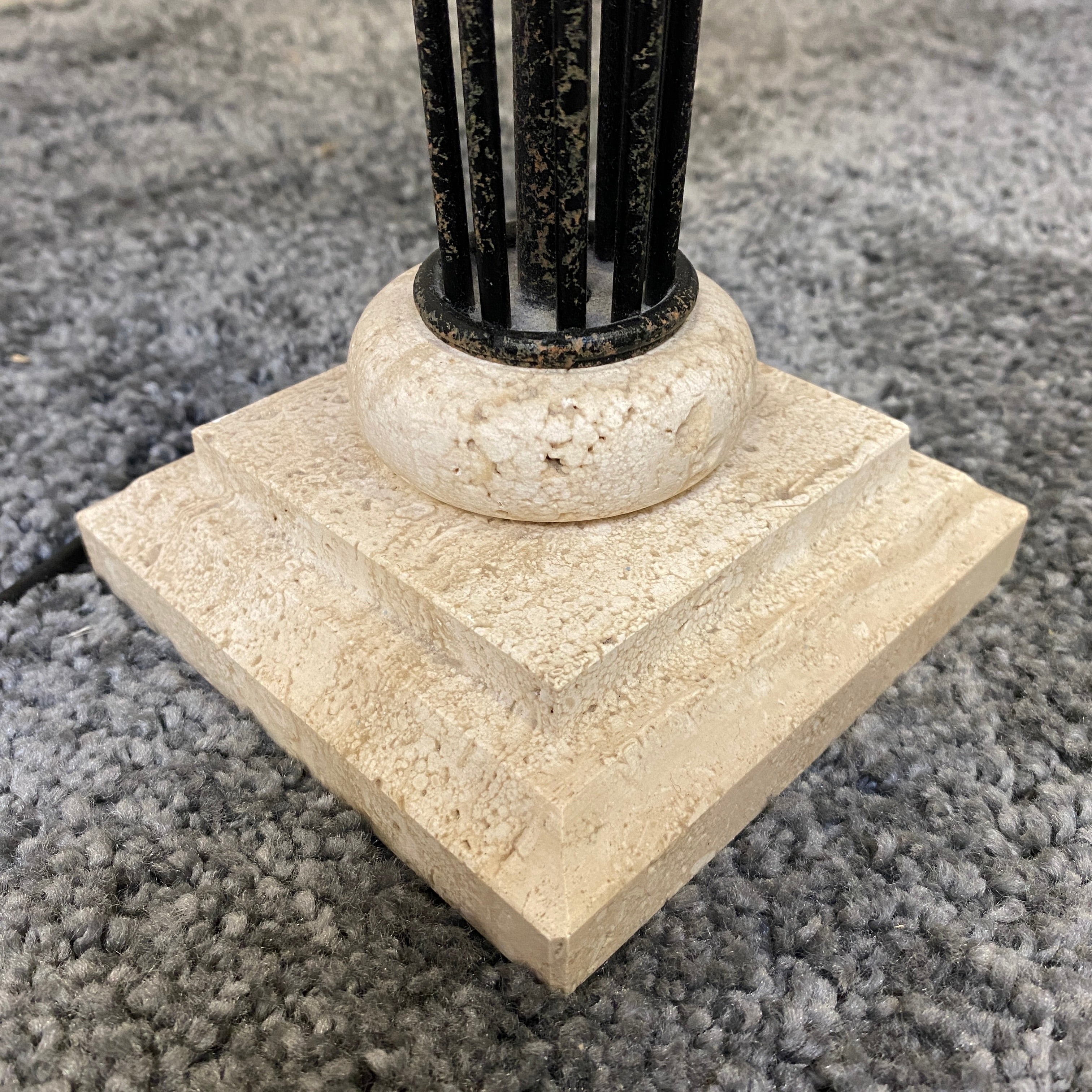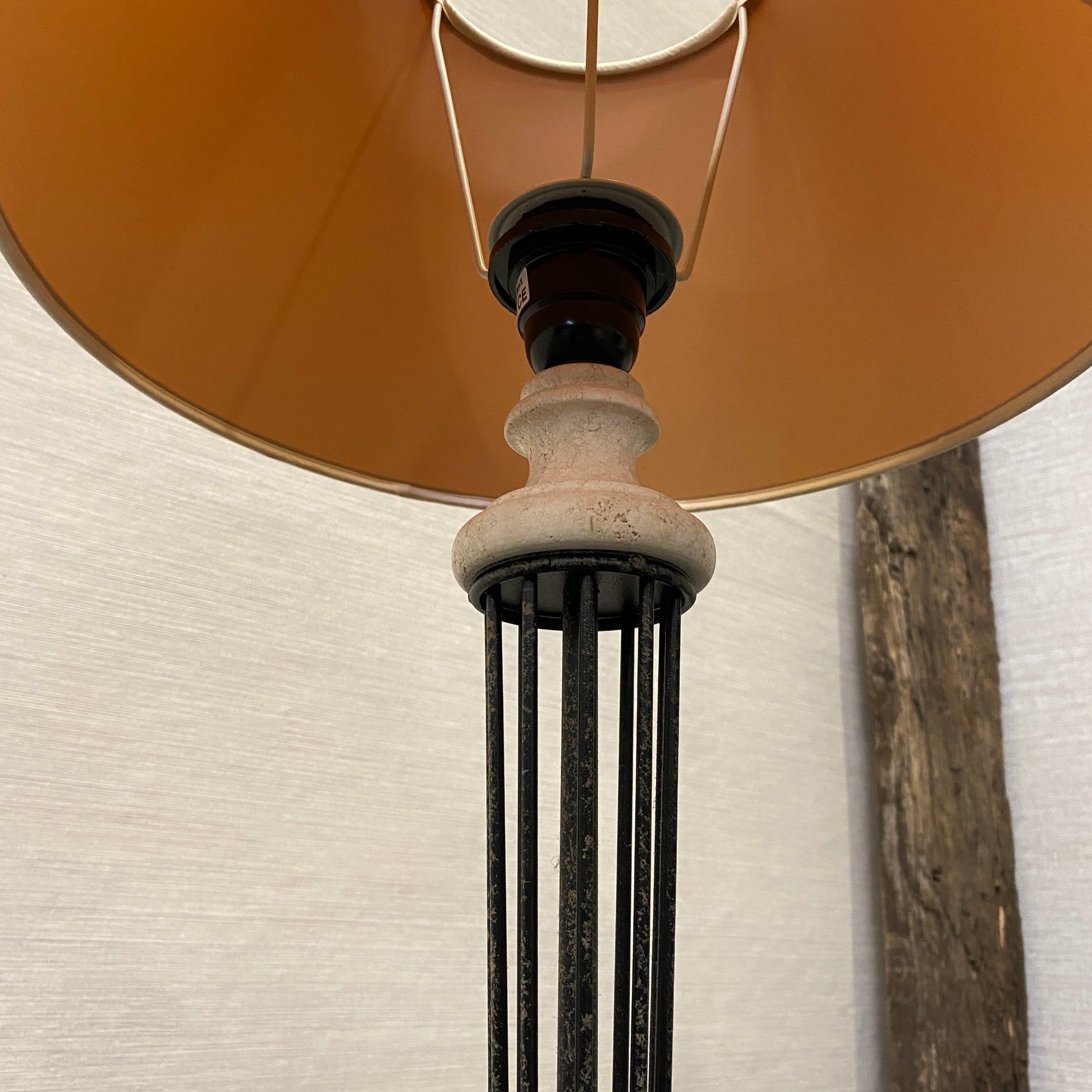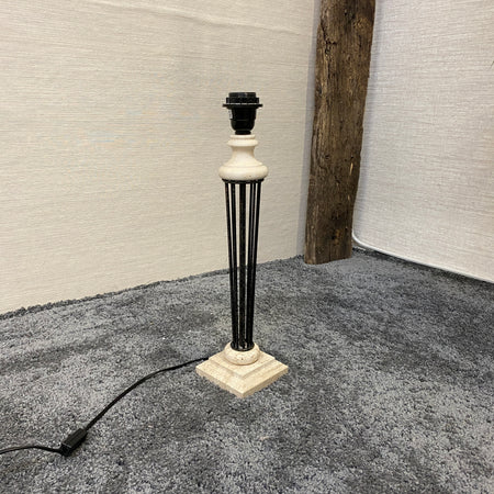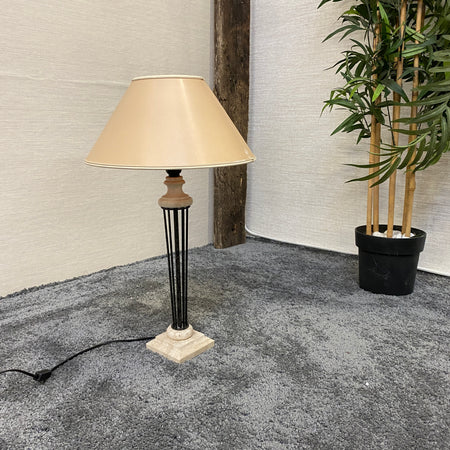 + Formschöne Tischlampe mit hohem, schlankem Säulenfuß aus Metall und dekorativen Details