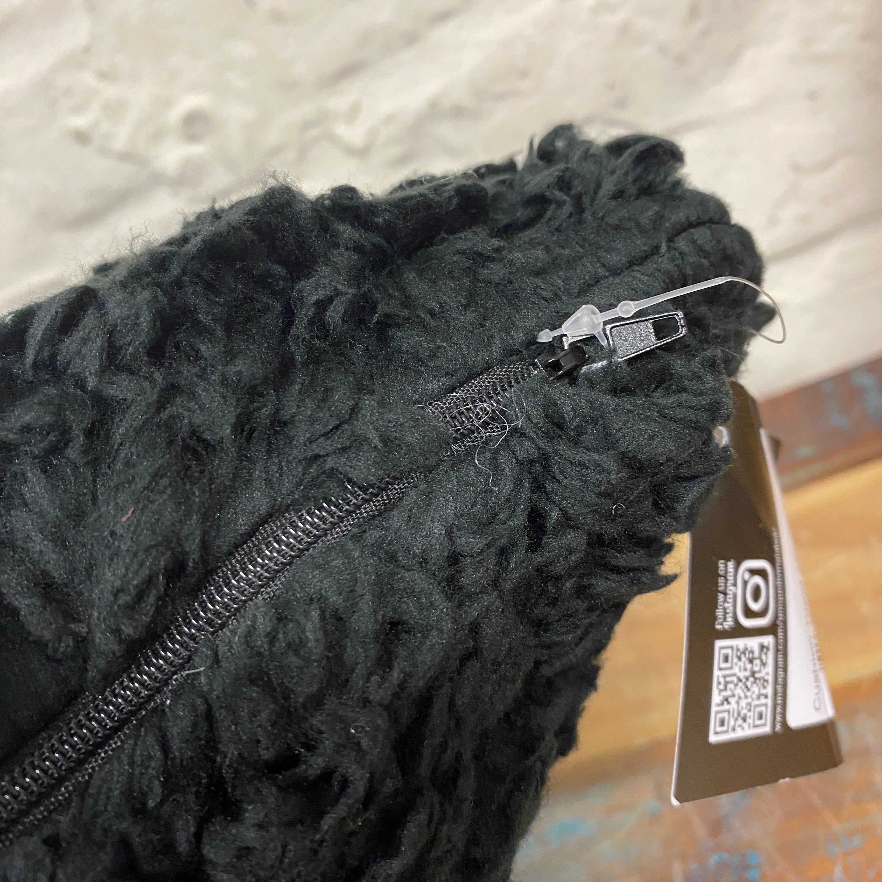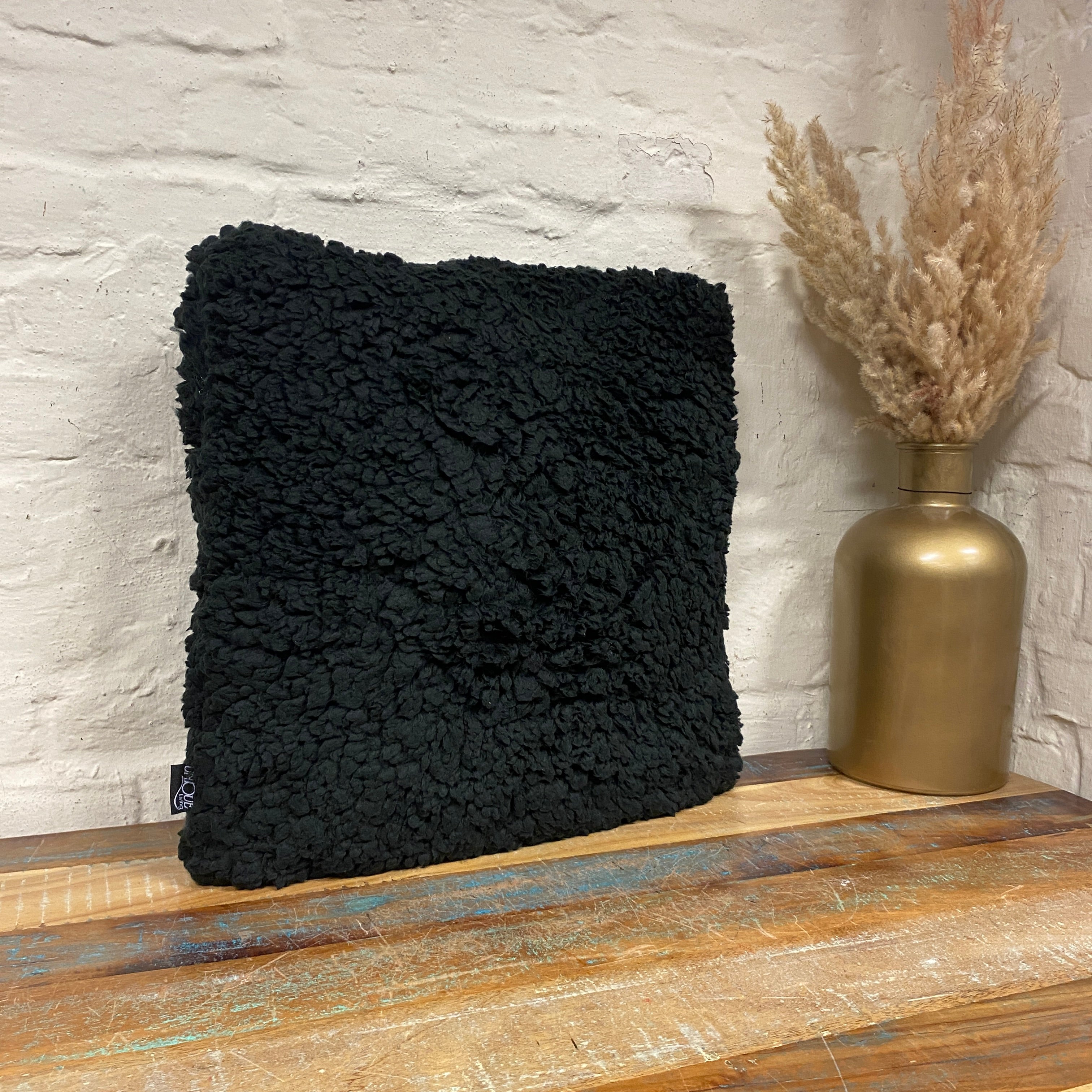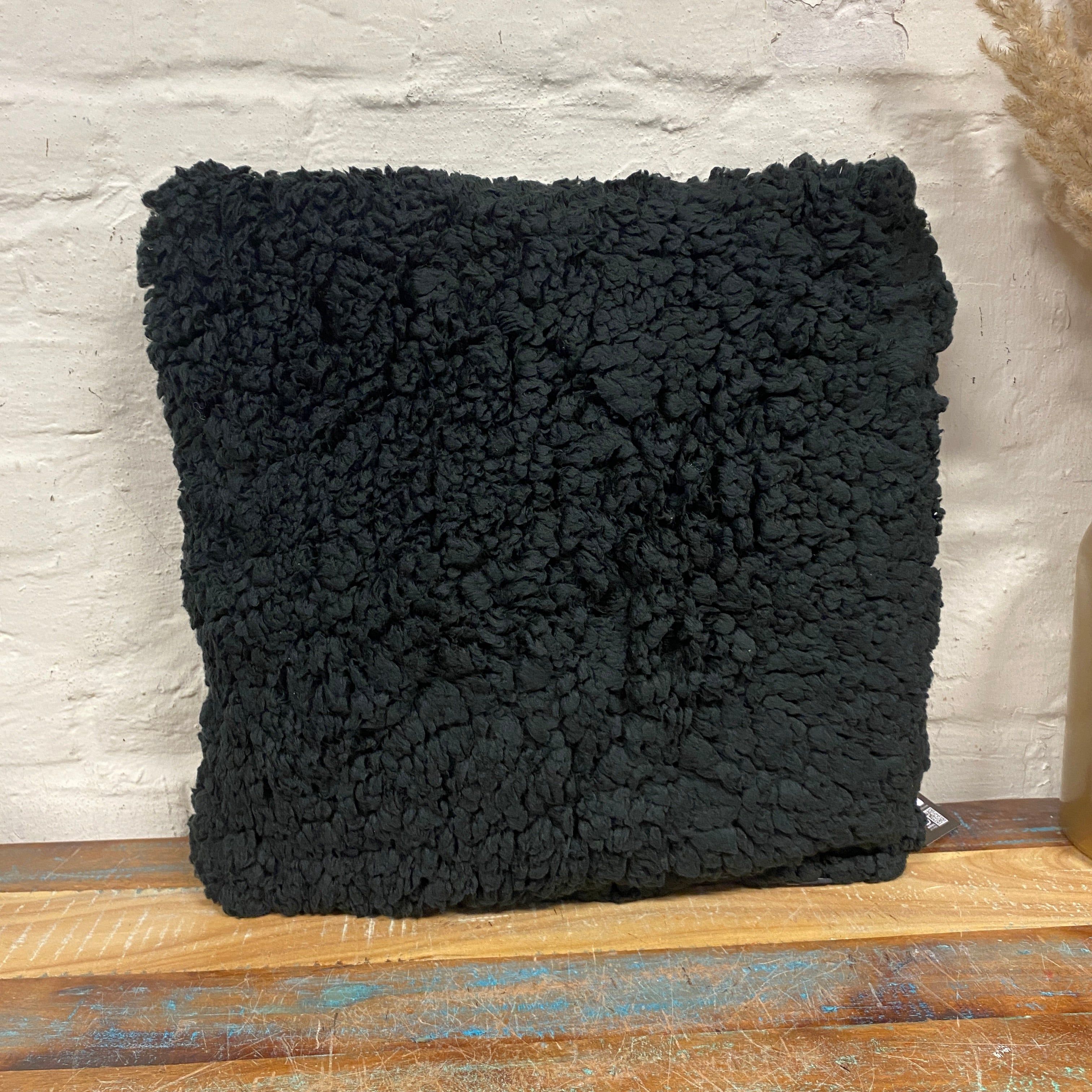 + Weiches Zierkissen in schwarzer Teddyfell-Optik mit strukturierter Oberfläche
