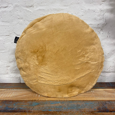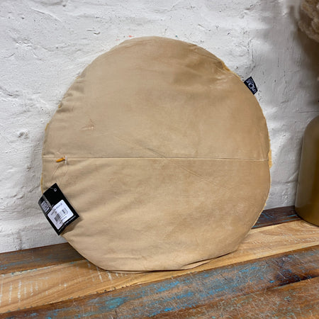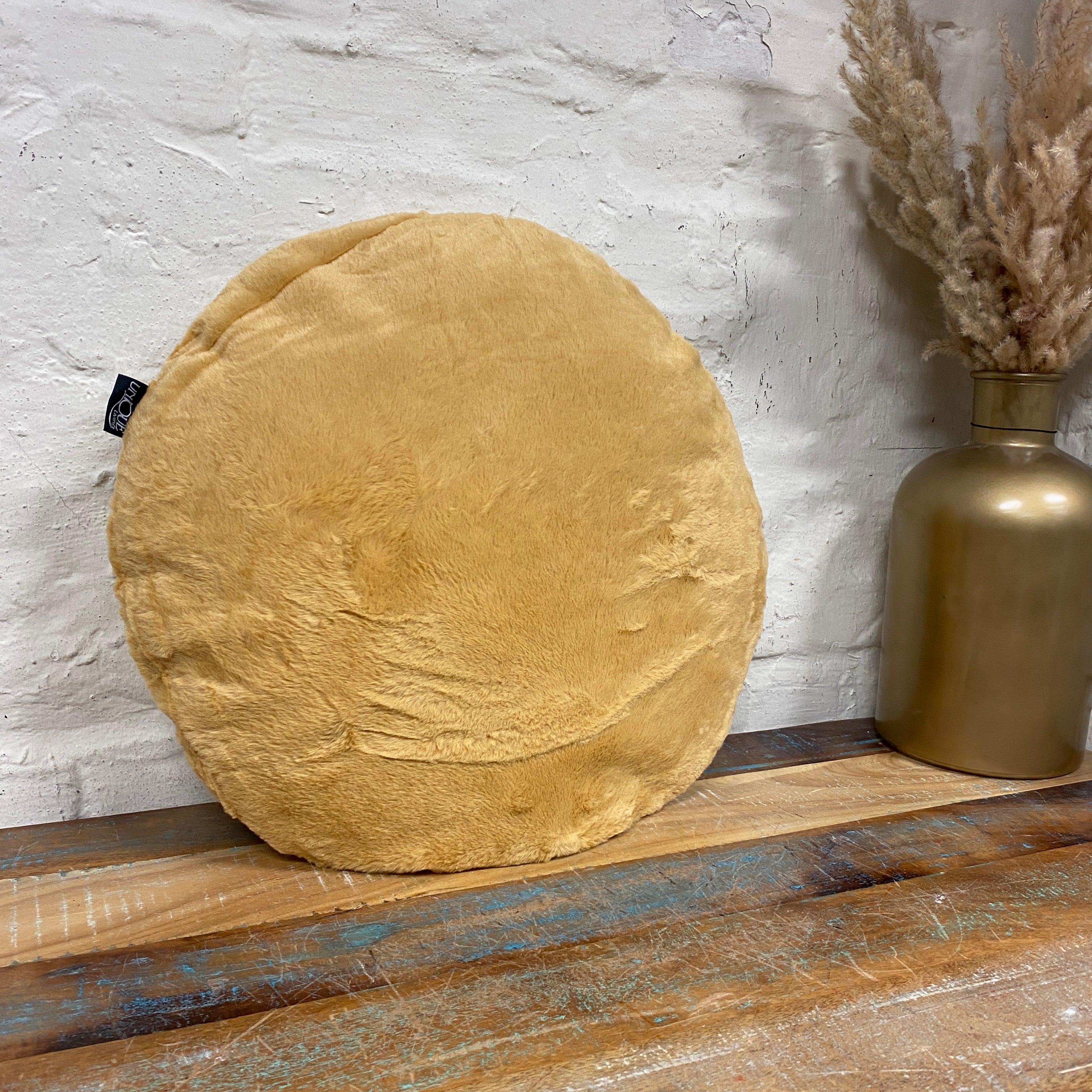 + Rundes Zierkissen in edler Samtoptik in warmem Goldton