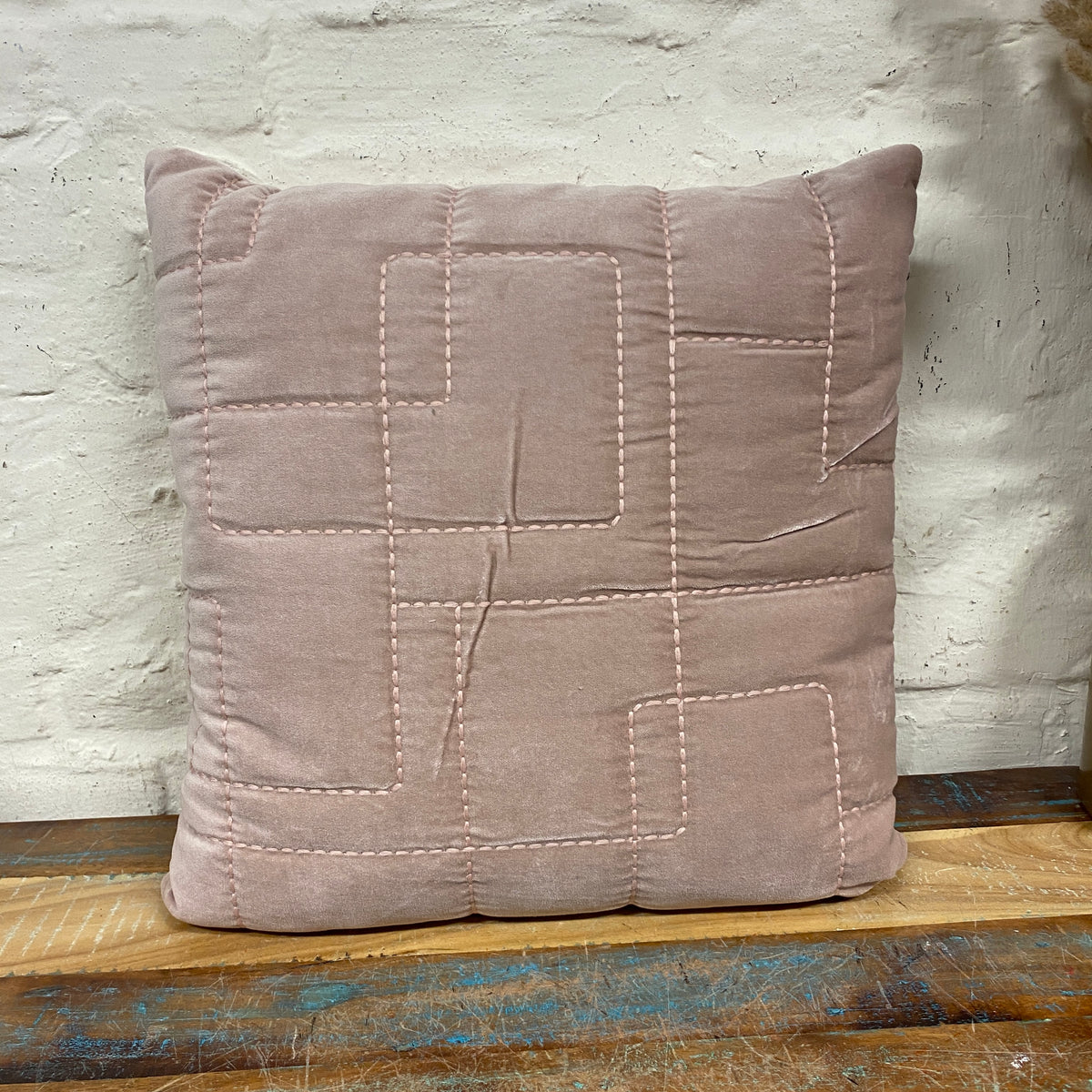 + Modernes Zierkissen in Altrosa mit dekorativer Steppung im geometrischen Muster