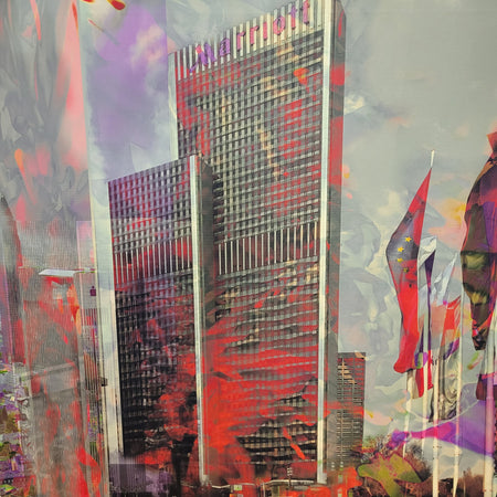 + Großformatiges Leinwandbild mit Frankfurt Skyline und Marriott hotel