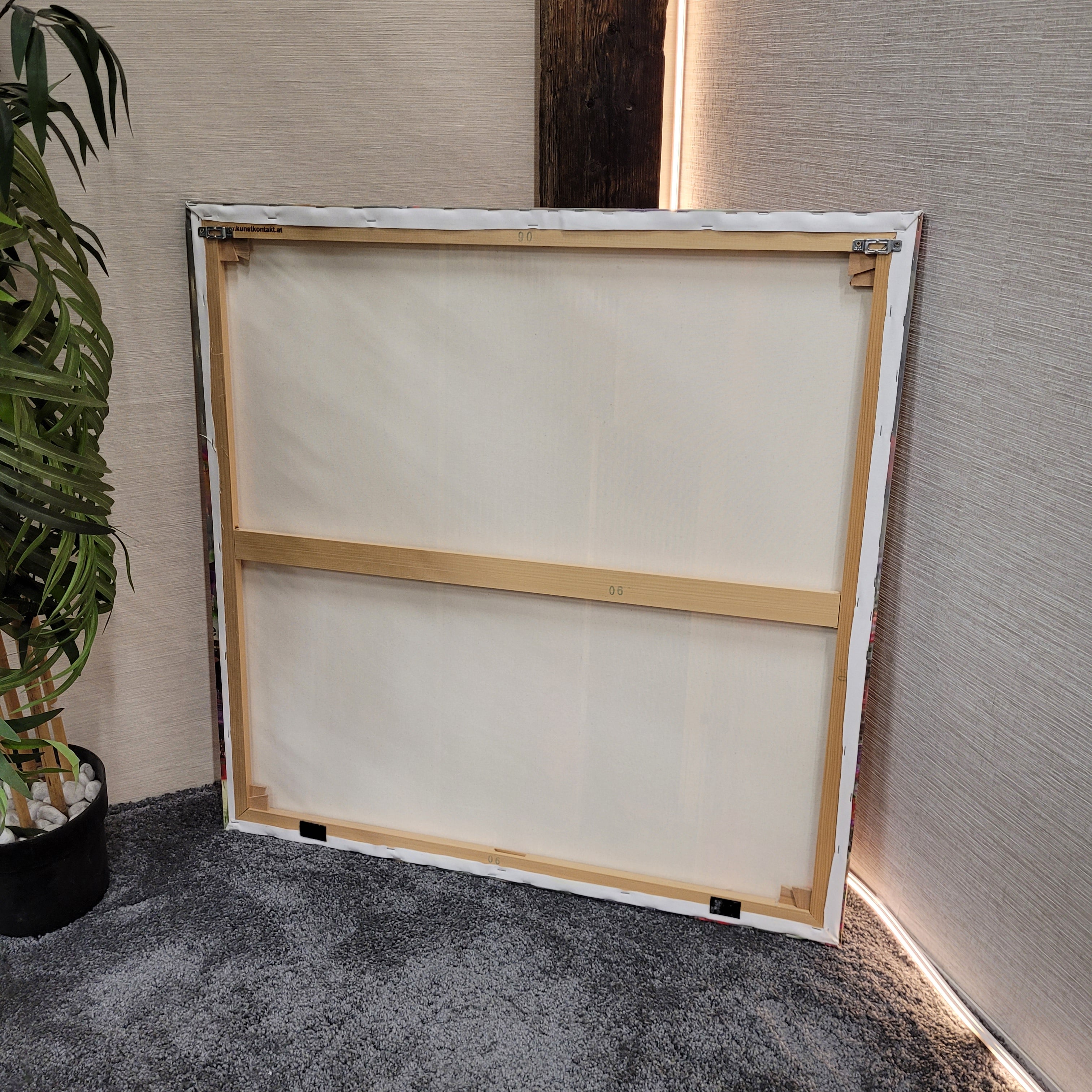 + Stabiler Holz-Keilrahmen auf der Rückseite – sofort aufhängbar