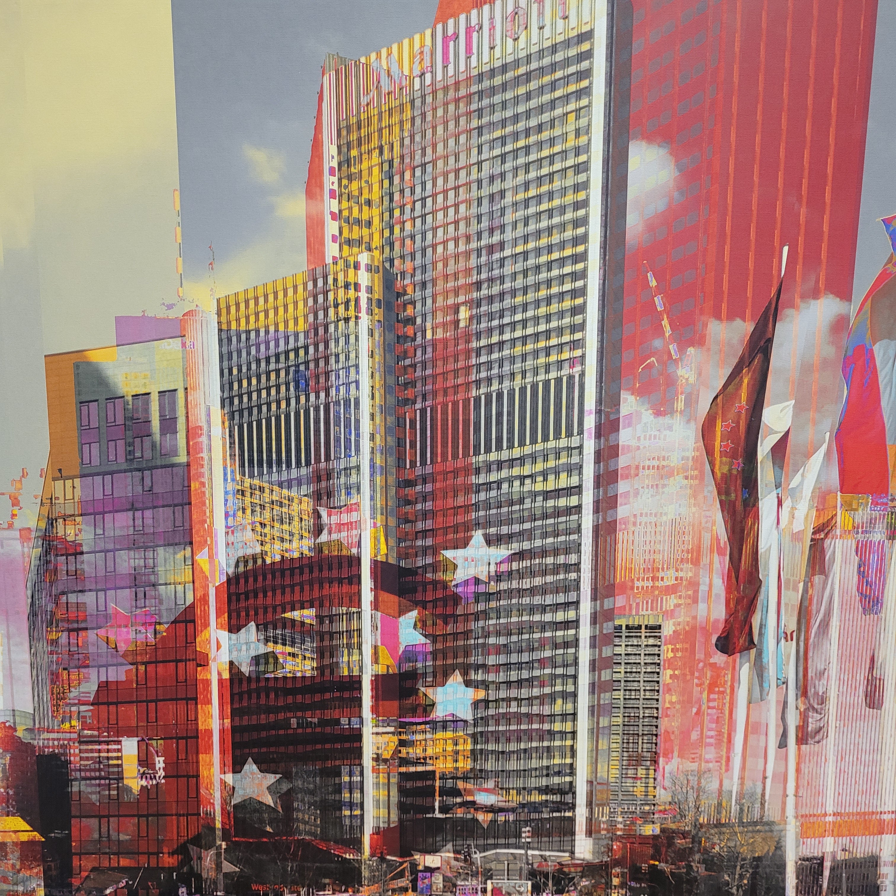 + Urban-Art / Pop-Art Stil mit dynamischen Farben und modernem Stadtmotiv