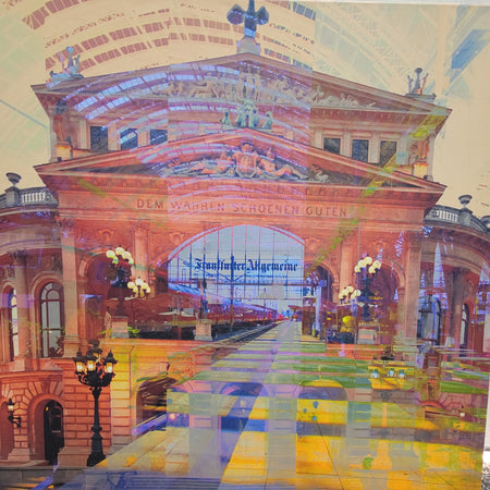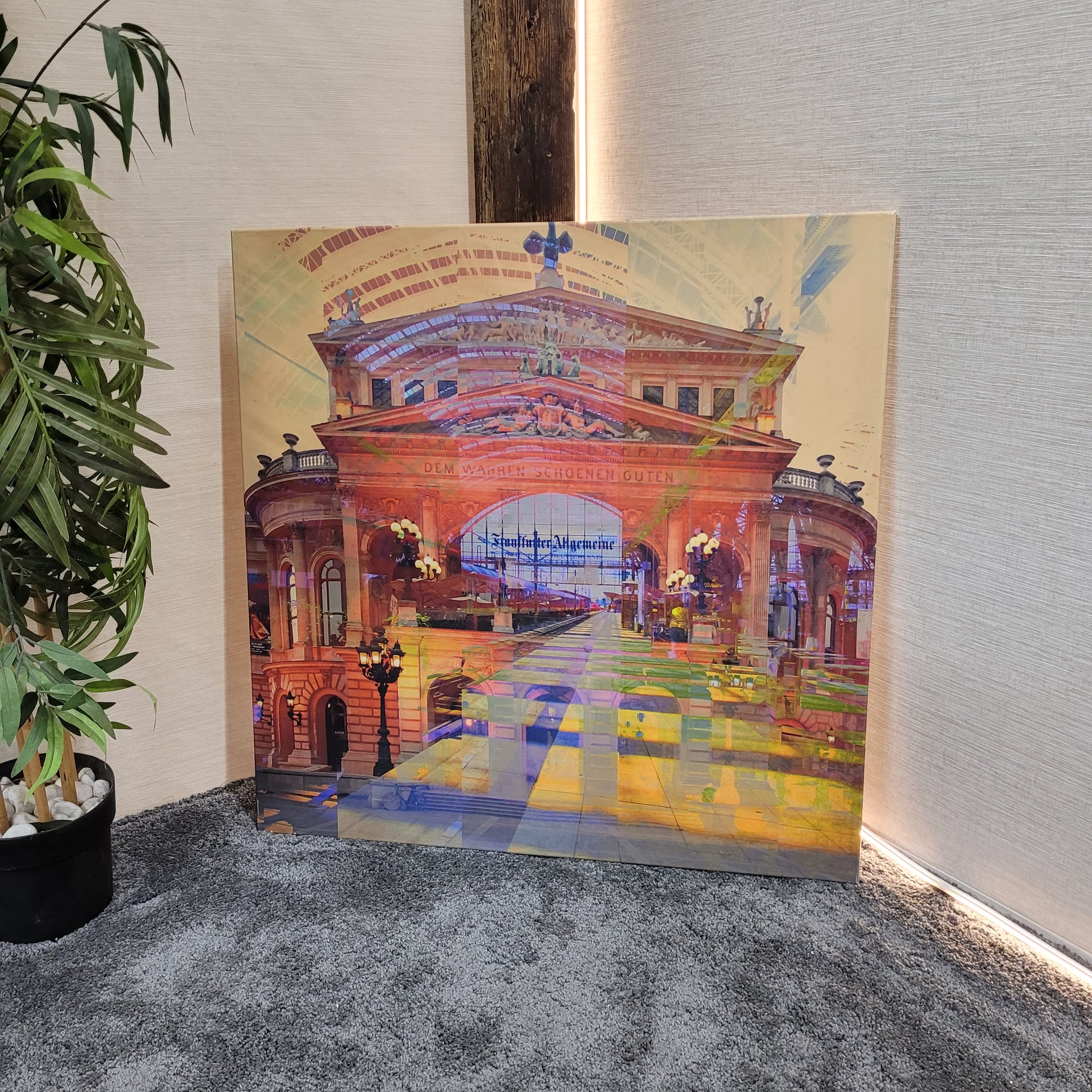 + Großformatiges Leinwandbild mit Motiv der Alten Oper Frankfurt im Urban-Art-Stil