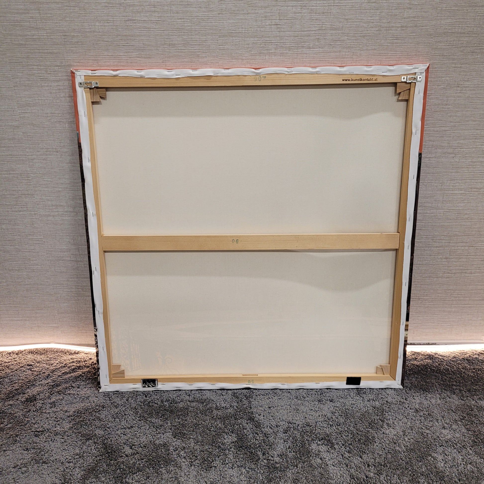 + Stabile Holzrahmen-Konstruktion auf der Rückseite, sofort aufhängbar